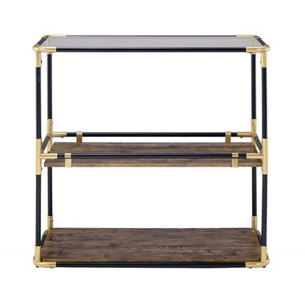 Benzara BM191404 Rechange Glass Top Console Table Metal Tubular Framing and Wooden Shelves, Black & Brown