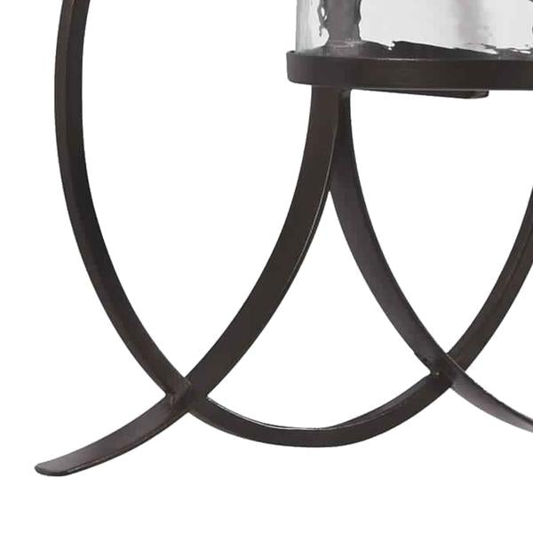 Benzara Scroll Design Metal Wall Sconce with Candle Holder, Dark Bronze and Clear