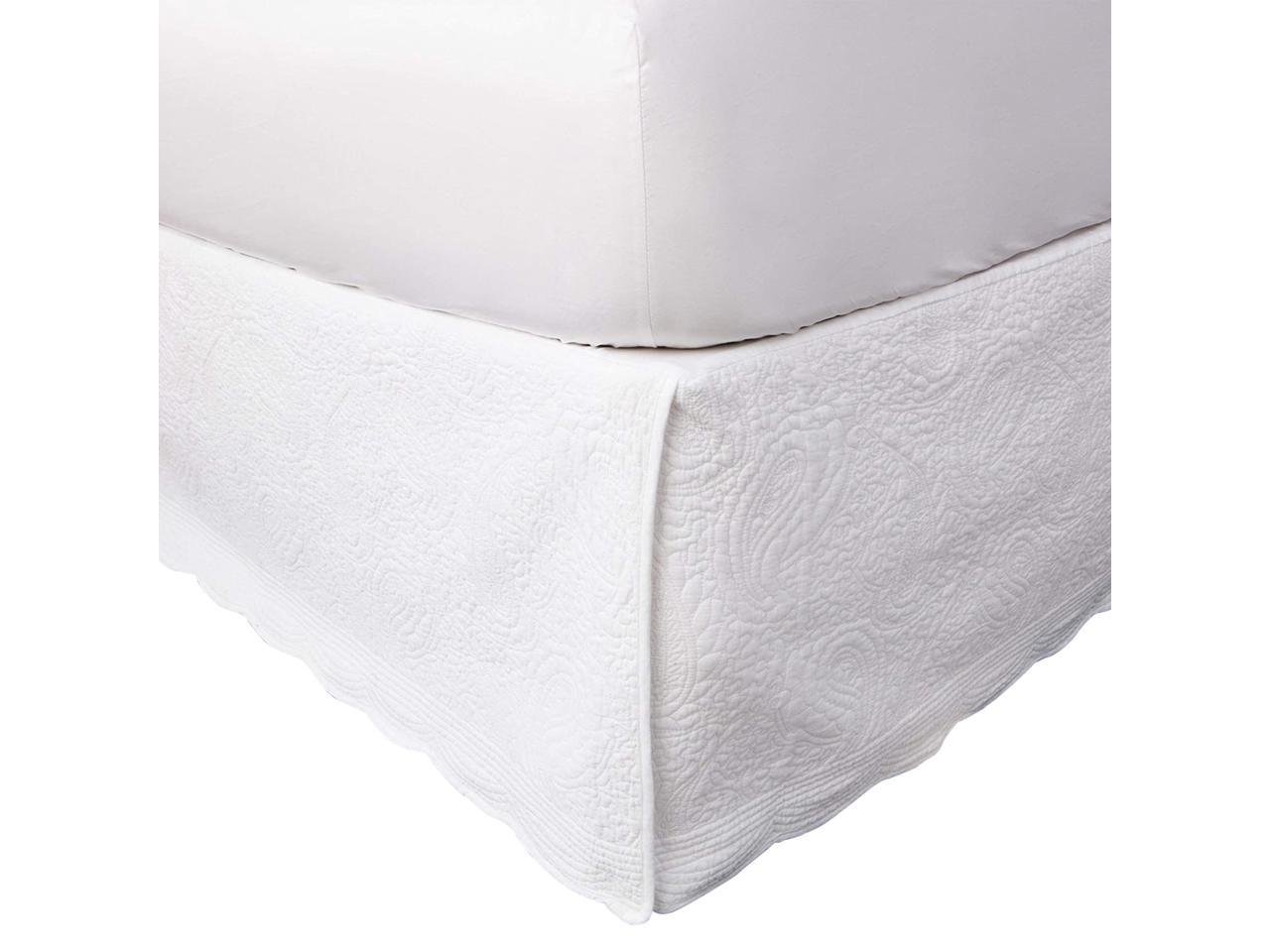 Benzara Tiber Fabric Queen Size Bed Skirt with Paisley Stitching Details, White