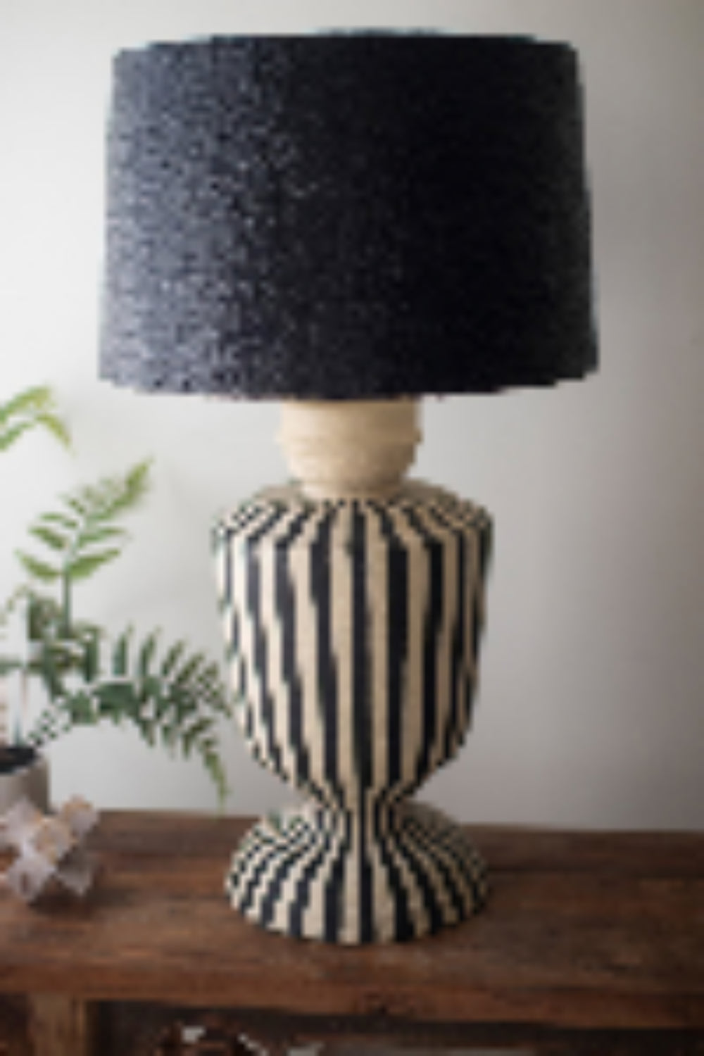 Black and White Paper Mache Lamp with Black Shade – 32" Tall by Kalalou