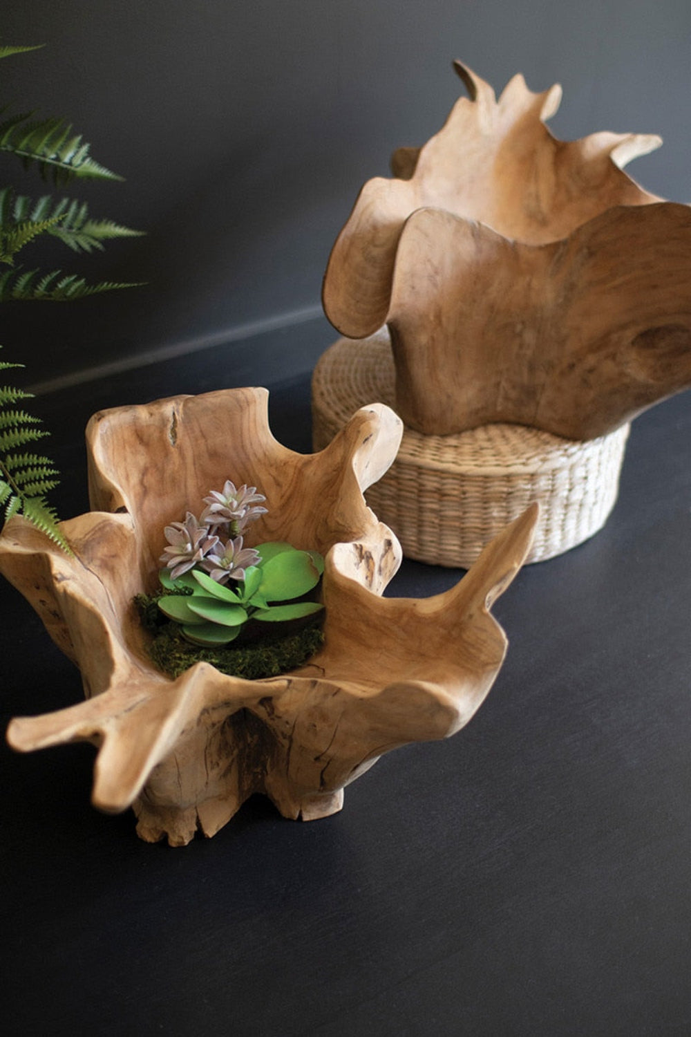 Blooming Teak Root Bowl – 12"Tall Handcrafted Organic Wood Accent by Kalalou