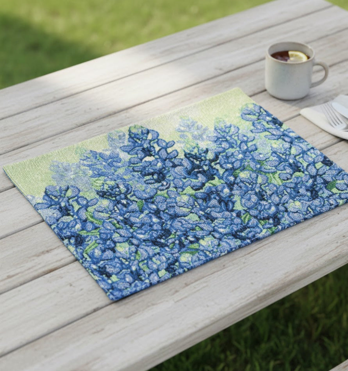 SKU - MWWCUSTOM-TBLBNPBlue Bonnets Placemat – 18" Cotton Blend by Manual Woodworkers