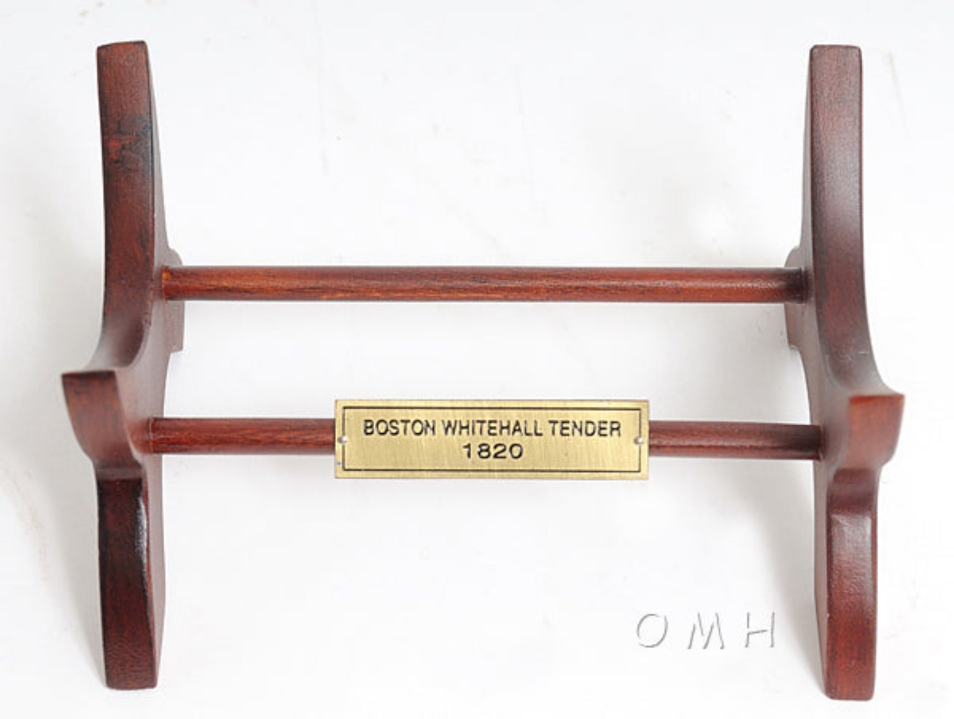 The Boston Whitehall Tender boat model is a fully assembled wooden replica of the classic rowboats dating back to the early 1800s. Handcrafted using authentic "plank on frame" construction, this 24.5-inch display boat features finely detailed components including four oars, oar holders, interior ribs, brass nameplate, seats, and a solid wood stand. Each piece is meticulously crafted by master artisans, taking over 50 hours to build. The model is made entirely of wood and delivers the charm and craftsmanship of maritime tradition. Ideal for collectors and nautical enthusiasts, this rowboat replica brings historic elegance to home or office decor.