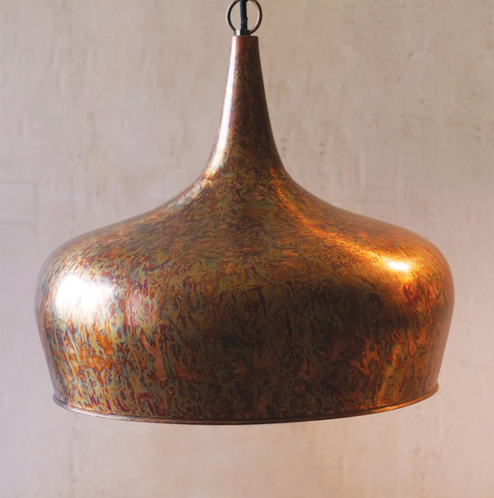 Brown Metal Tear Drop Pendant Lamp 16" H – Rustic Industrial Finish, Decorative Lighting by Kalalou