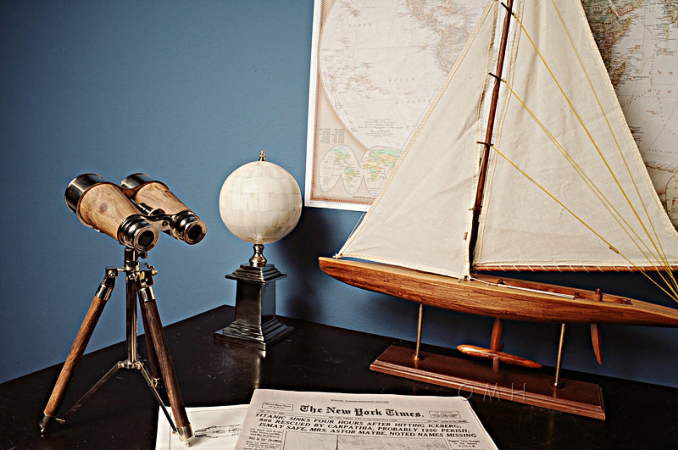 Buffalo Bone Globe – 14.5" Tall – Mounted on Polished Aluminum Base By Old Modern Handicrafts