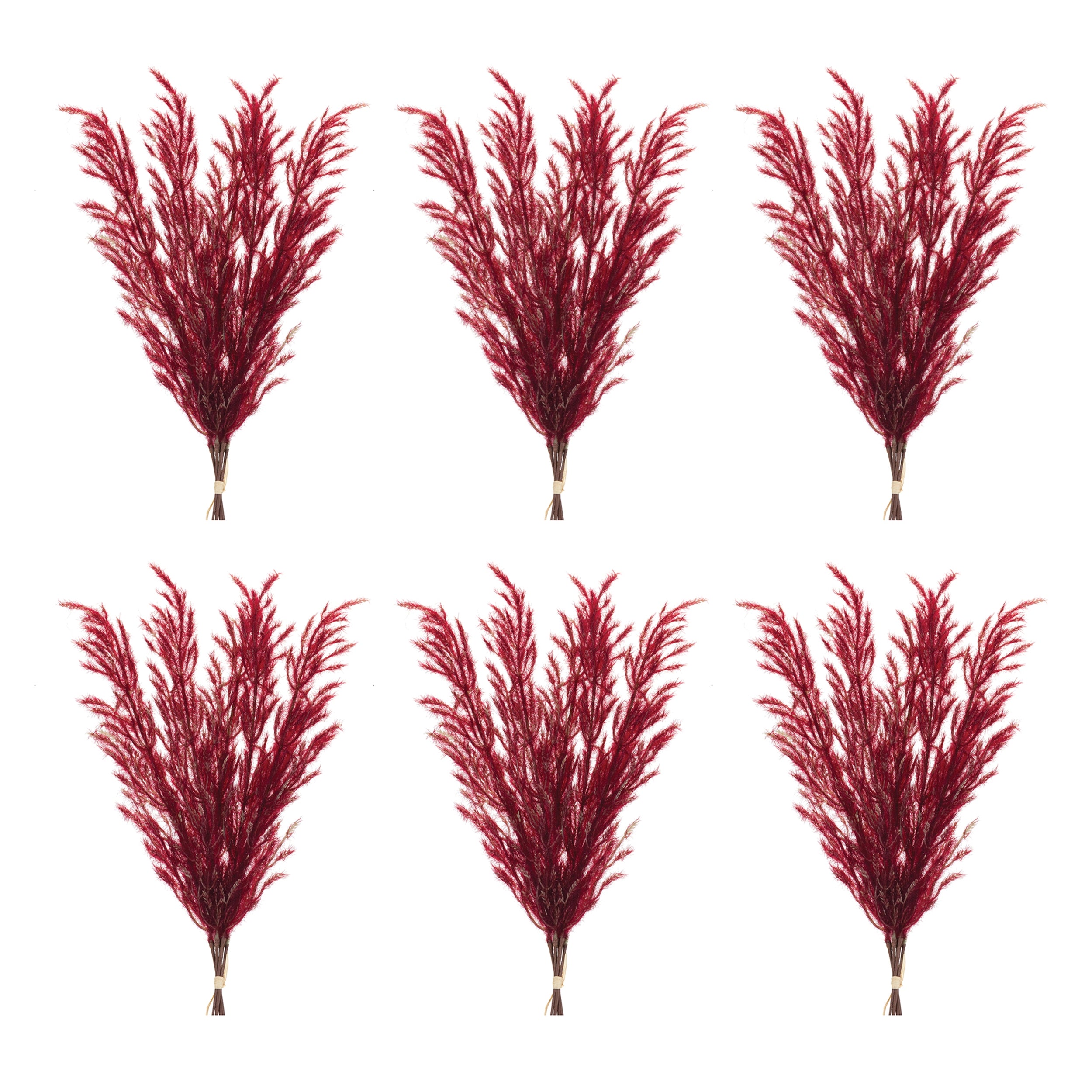 Enhance your autumn decor with this set of six Burgundy Plume Bundles. Measuring 8.5 x 3.5 x 32 inches each, these vibrant crimson stems bring height and a natural plume texture to fall and Thanksgiving arrangements. Crafted from durable plastic and polyester, they maintain their rich color and shape for repeated seasonal use. Perfect for displaying in vases, wreaths, garlands, or table centerpieces, these bundles add warmth and elegance to your autumn settings. Lightweight and versatile, they can be combined with other seasonal florals or used alone to create impactful arrangements. Designed for indoor use, this set brings a lasting seasonal accent to any home display.