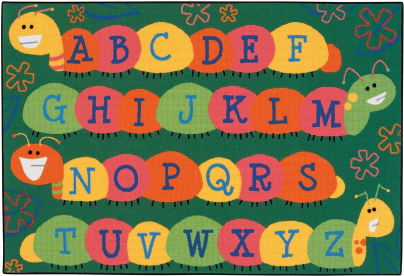 Carpet for Kids Caterpillar Friends Value Green Learning Rug, Rectangle