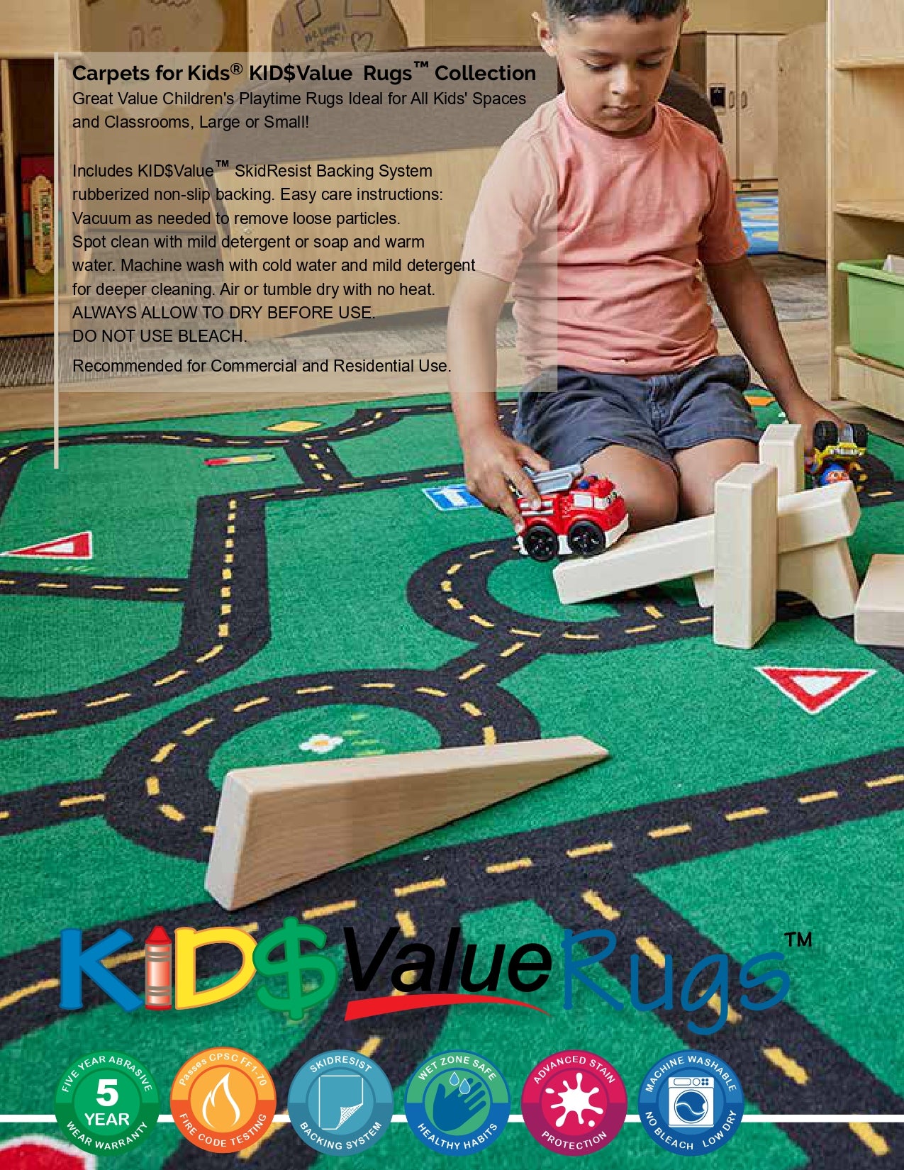 Backing Material: KID$Value SkidResist backing provides a rubberized grip to smooth flooring and is machine washable. Includes non-allergenic synthetic latex
