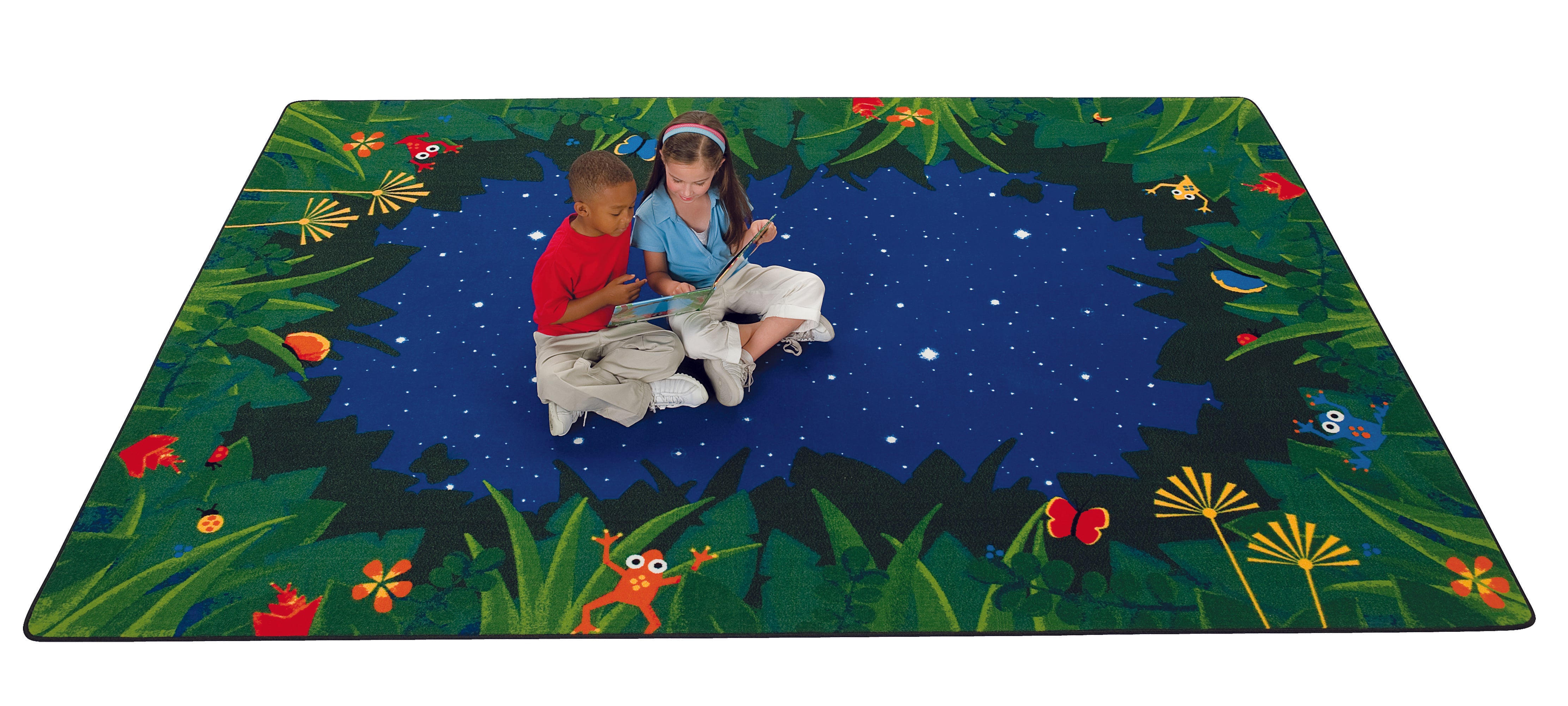Transform your classroom into a calming, nature-inspired environment with the Peaceful Tropical Night Rug by Carpets for Kids. This rectangular rug features soft, serene hues and a tranquil tropical design that promotes focus, relaxation, and a peaceful atmosphere—perfect for reading areas, quiet corners, or group activities.