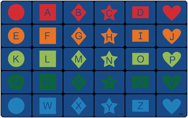 Alphabet Learning Rug with Shapes - Colorful Classroom Rug for Kids Learning, Play and Group Activities, Rectangle
