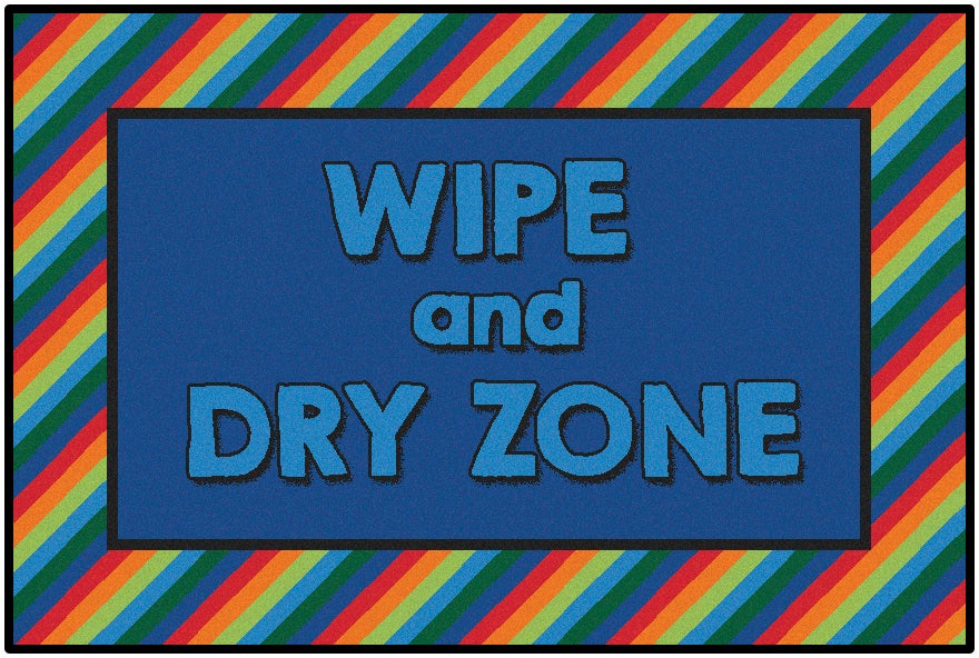 Brighten up your classroom while promoting hygiene with the Carpets for Kids Rainbow Striped Wipe & Dry Classroom Rug. This vibrant 3' x 4' 6" rectangular rug features colorful rainbow stripes and a bold "Wipe & Dry" message, encouraging students to clean their hands or shoes before entering the learning space. Ideal for classroom entrances, sink areas, or hygiene stations, this rug is both a visual reminder and a practical solution for maintaining a clean and cheerful environment.