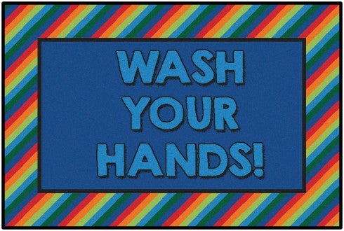 Carpets for Kids Rainbow Striped Wash Your Hands Classroom Rug – 3' x 4' 6" Rectangle