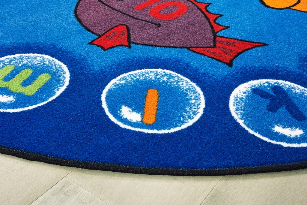 Introduce fun and interactive learning with the Fishing for Literacy Rug from Carpets for Kids. This blue oval rug features colorful, alphabet fish in an engaging underwater design, making it a perfect addition to any classroom or reading corner to support early literacy development.