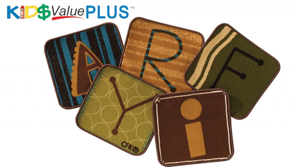 Carpets for Kids KIDsValue PLUS Alphabet Blocks Seating Learning Rug 14" Squares Kit, Nature Colors, Set of 26