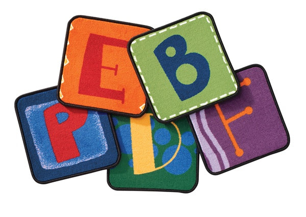 Carpets for Kids KIDsValue PLUS Alphabet Blocks Seating Rug 14" Squares Kit, Primary Colors, Set of 26