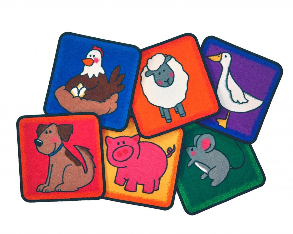 Carpets for Kids PLUS Farm Animal Seating Learning Rug – 16" Squares Kit, Set of 12