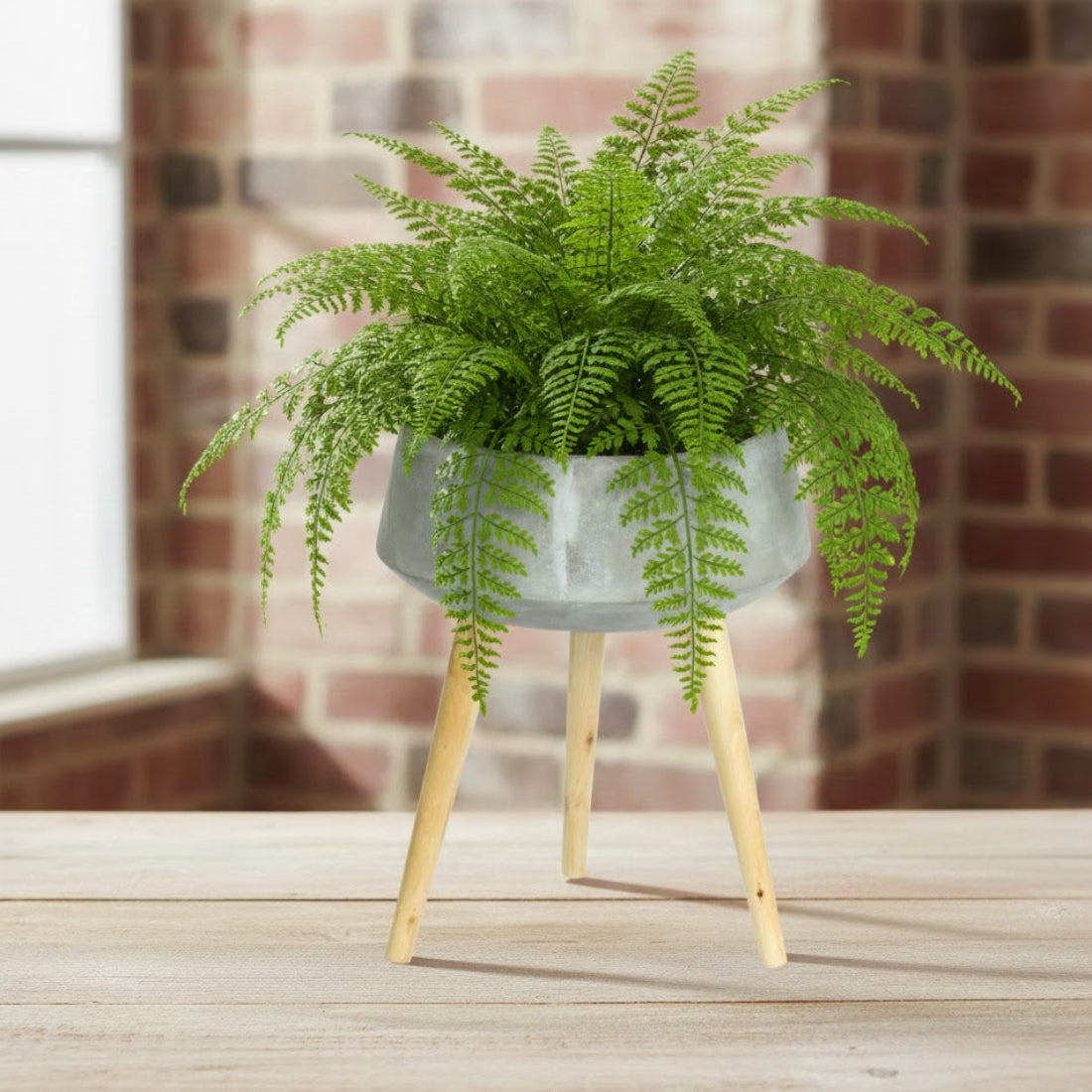 Cement Planter on Mid-Century Wood Legs – 17.5" by Melrose