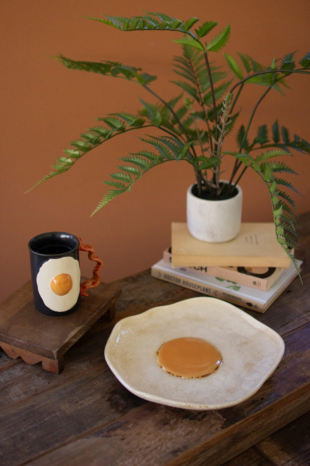 Ceramic Breakfast Platter – Fried Egg Design – 11.75" Tall by Kalalou