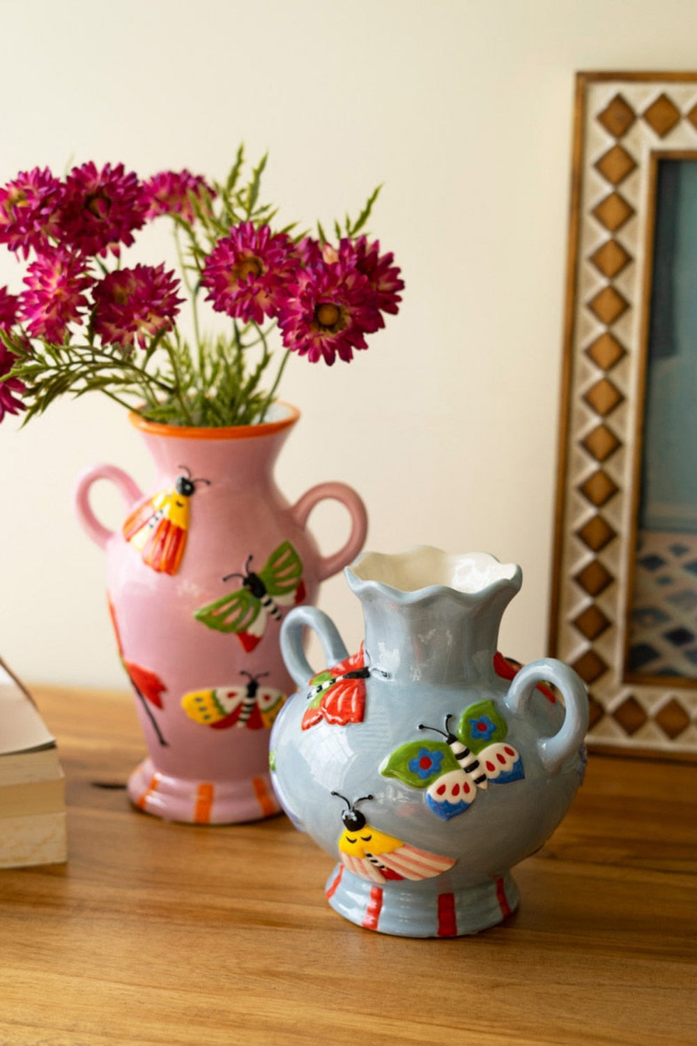 Ceramic Butterfly & Moth Vase Set – 2 Decorative Multi-Color Vases