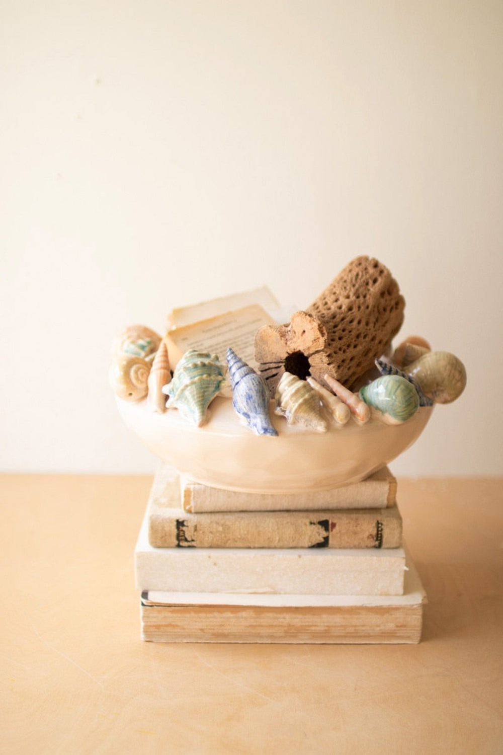 Ceramic Coastal Bowl – 5"Tall Blue Decorative Centerpiece by Kalalou