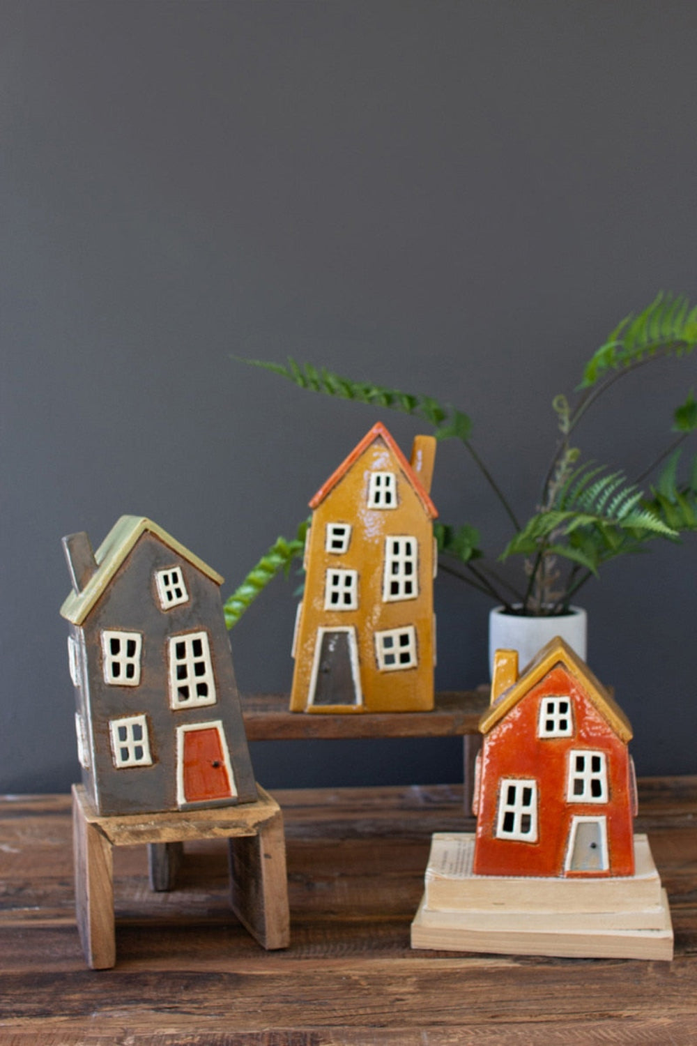 Ceramic Houses – 10" Tall Decorative Home Figurines Set of 3 by Kalalou