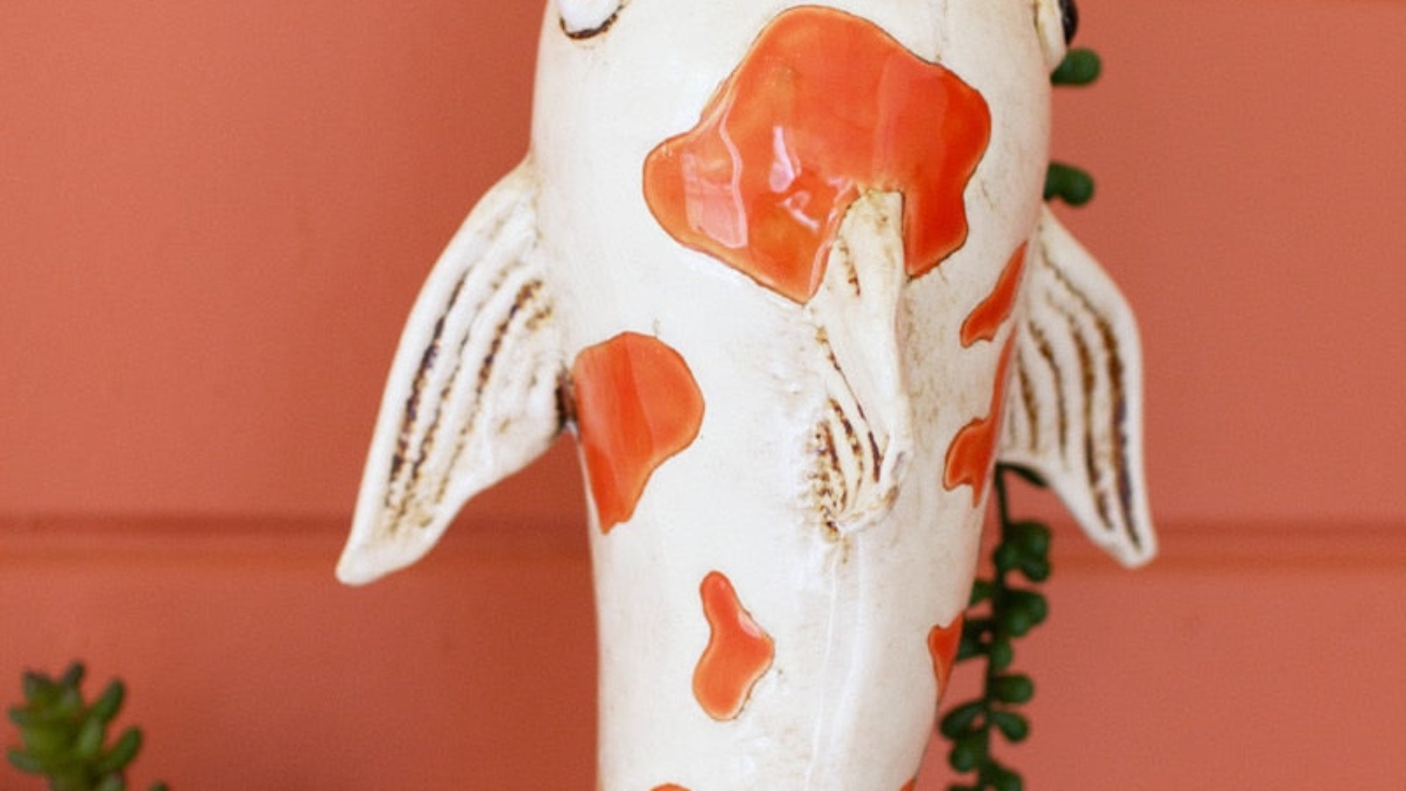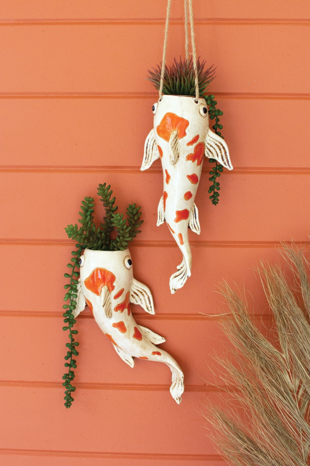 Ceramic Koi Fish Hanging Planter – 13" Tall Decorative Indoor Pot by Kalalou