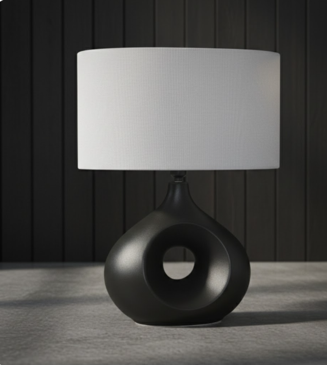 This modern ceramic table lamp brings clean lines and functional style to everyday spaces. Featuring a sculptural ceramic base with a circular design, it adds visual interest while maintaining a sleek, contemporary look. The black and grey finish pairs effortlessly with a linen shade, creating a balanced contrast of texture and tone. Standing 22.5 inches tall, this lamp is ideal for side tables, desks, or nightstands in living rooms, bedrooms, or offices. Designed to provide warm ambient lighting, it enhances the atmosphere of a room while serving as a stylish decorative accent. Requires one 60W bulb, not included.