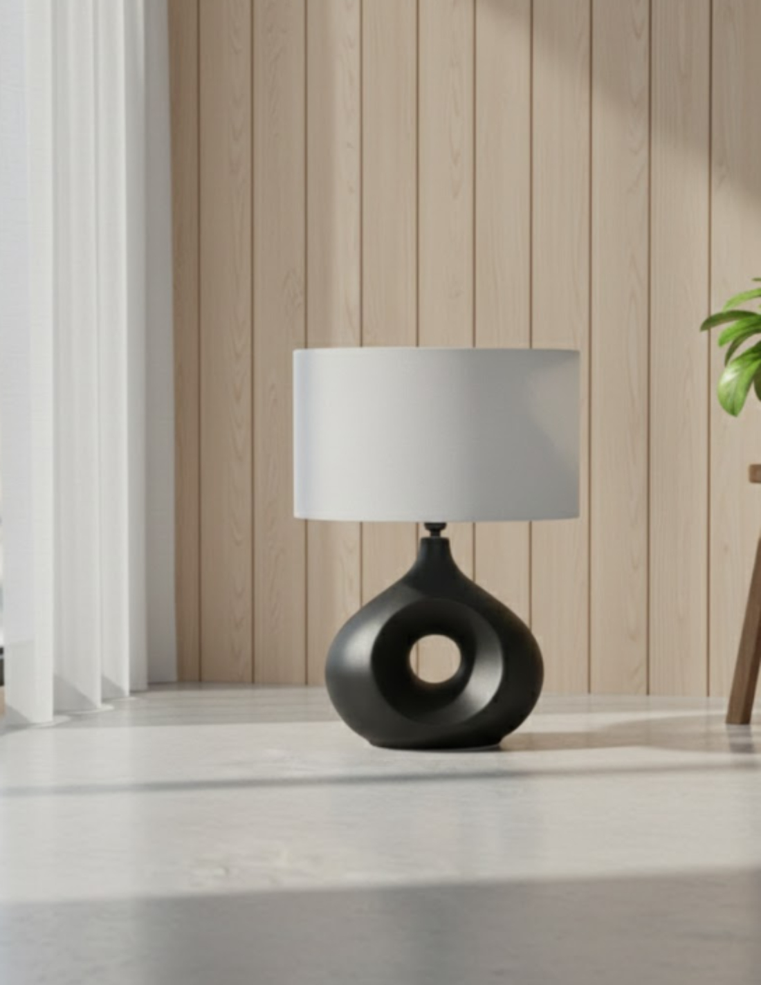 - Sculptural ceramic base with modern circle design