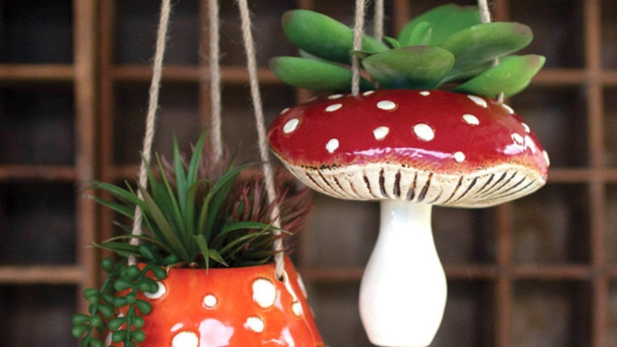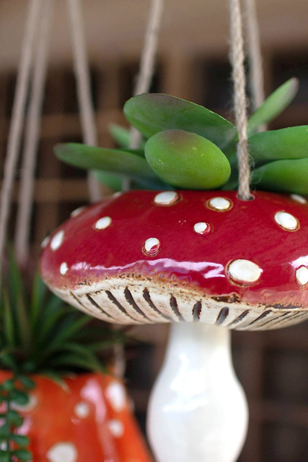 Ceramic Toadstool Hanging Planters Set – 7" Tall Mushroom Pots by Kalalou