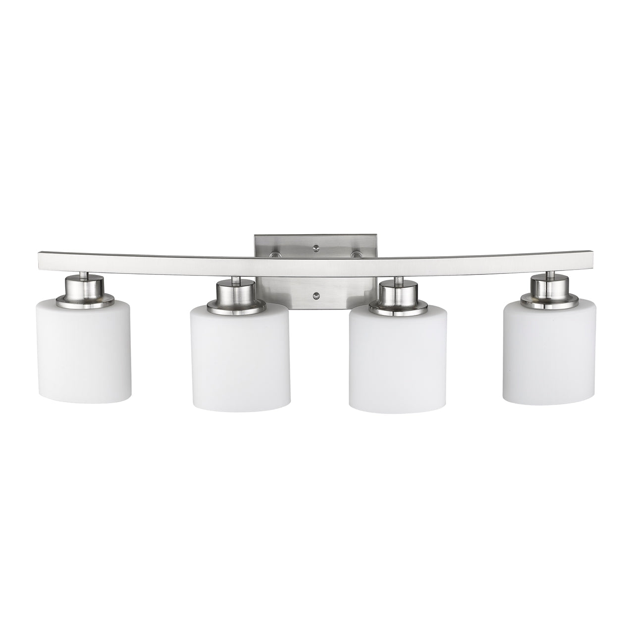 Aaliyah Contemporary 4 Light Brushed Nickel Bath Vanity Light Opal White Glass 32`` Wide Sold By Uber Bazaar