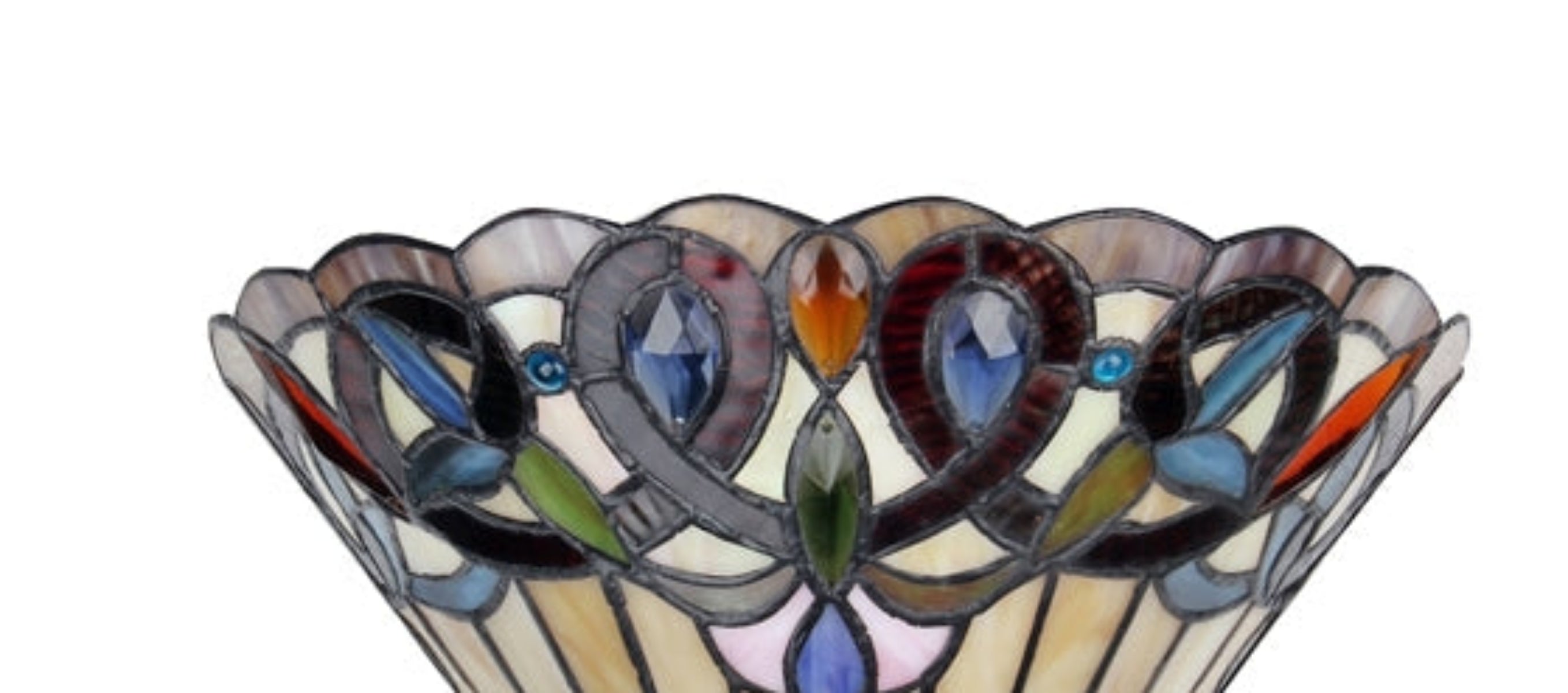 Transform your décor with the Chloe Lighting Ambrose Tiffany‑Style Victorian Wall Sconce. Featuring a 12″ wide shade crafted from hand-cut stained glass in warm ambers, blues, and greens, it’s set in an antique bronze metal frame. Mounted as an uplight, it emits a soft, inviting glow—ideal for hallways, bedside reading nooks, or living room accents. Perfectly suited for traditional, Victorian, or eclectic interiors, the Ambrose sconce adds artisanal flair and elegant ambiance.