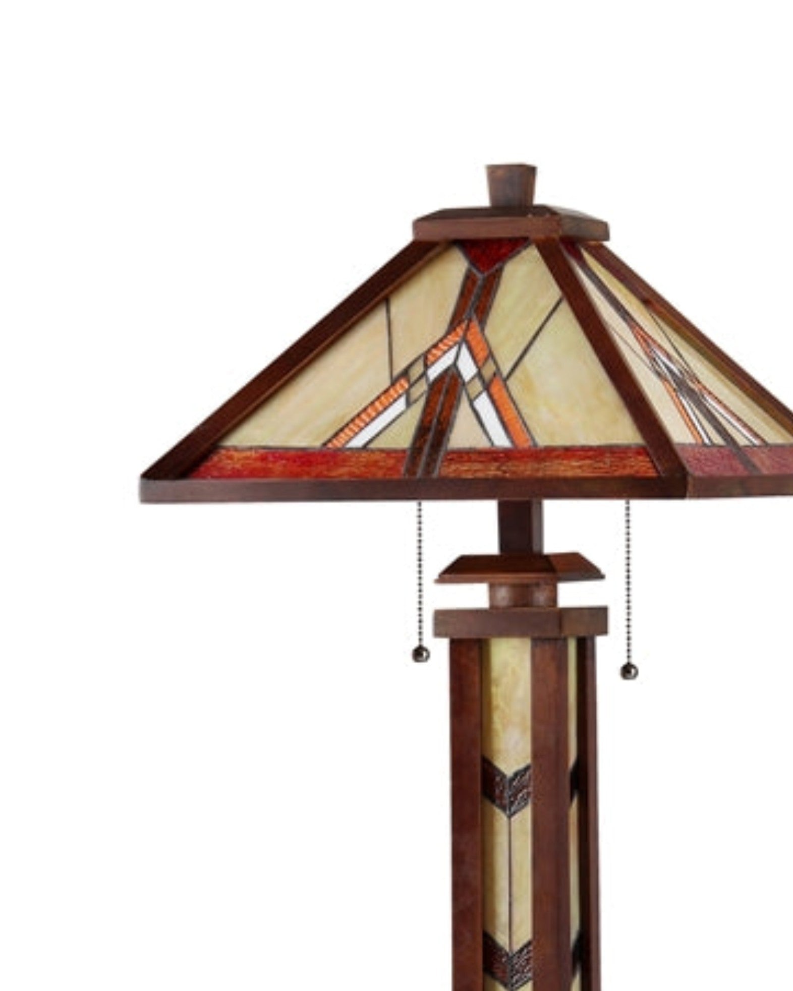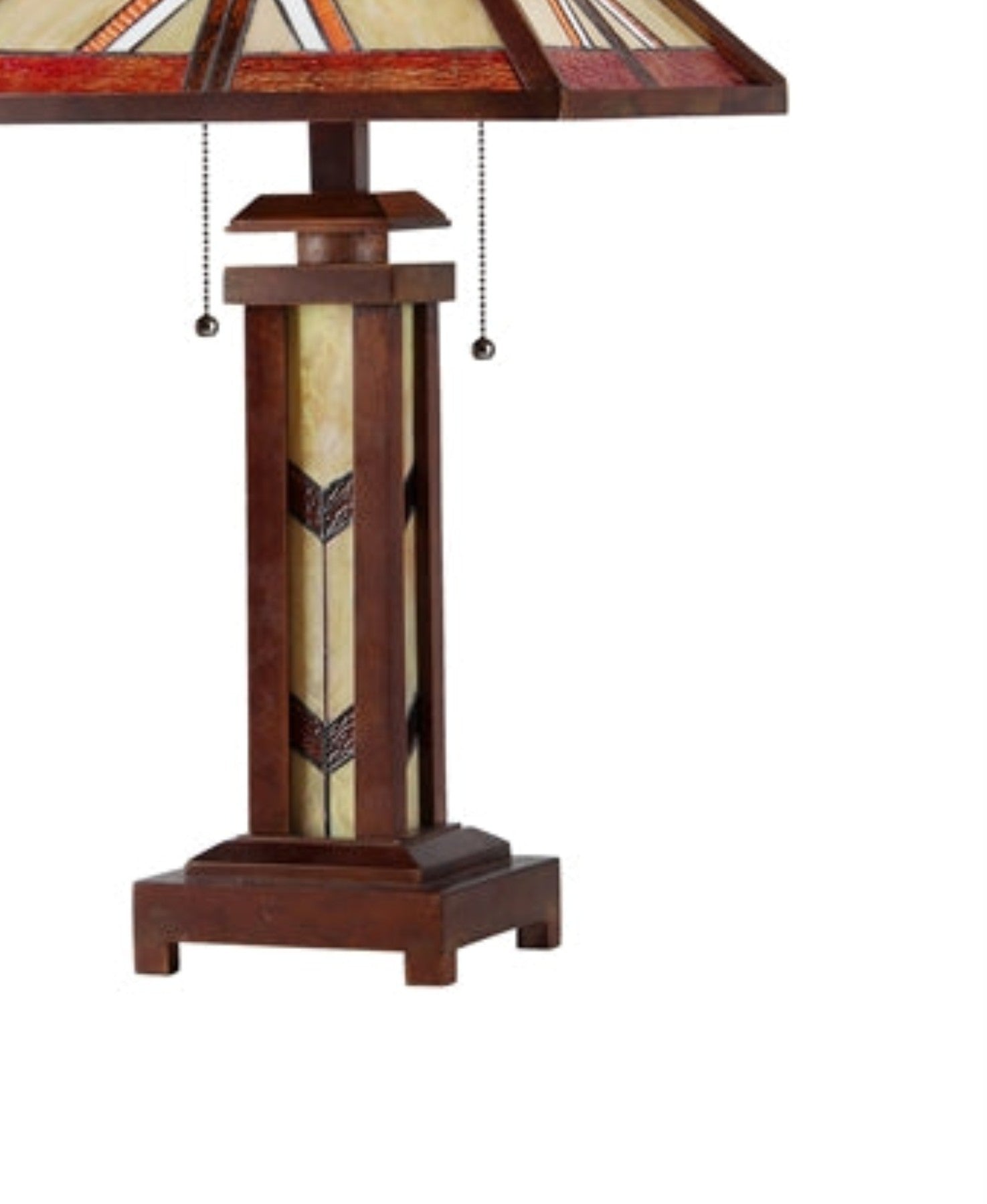 Add timeless Mission charm to your interior with the Anton double-lit table lamp, a handcrafted design that fuses stained Tiffany glass with solid wood structure. The warm dark walnut finish and subtle geometric glass patterns create a calm yet distinctive statement. With dual lighting functionality, this lamp delivers both ambient glow and focused brightness, ideal for side tables, desks, or reading nooks.