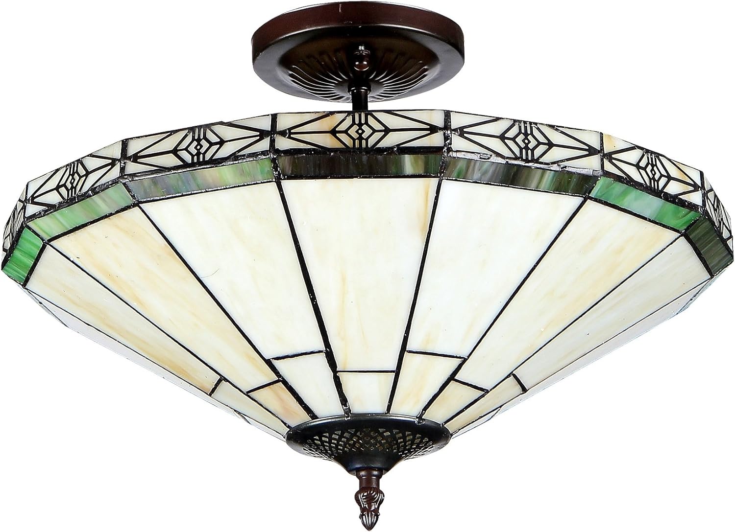 SKU - CHL-CH31315MI16-UF2 Belle Tiffany-style 2 Light Mission Semi-flush Ceiling Fixture 16`` Shade Sold By Uber Bazaar