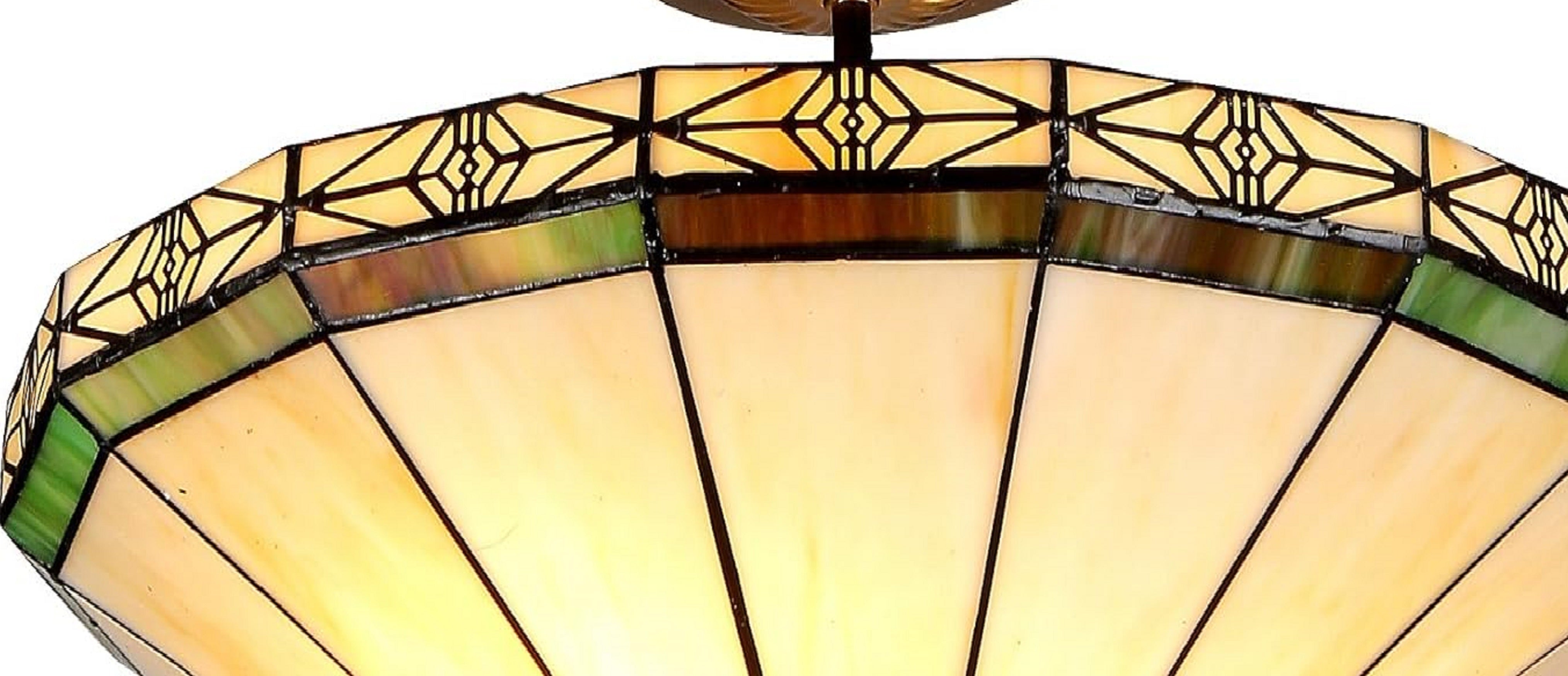 - Design: Mission-style semi-flush mount featuring handcrafted stained glass with a unique pattern, providing a soft and warm illumination.