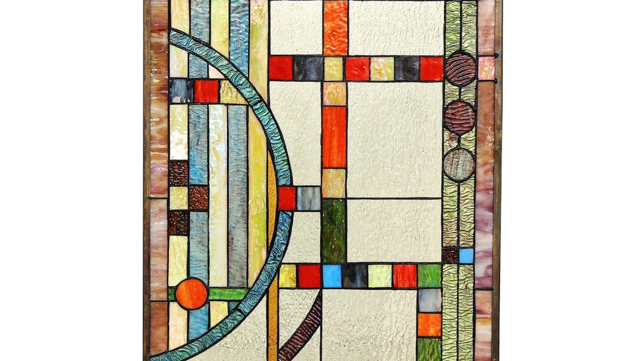 The Chloe Lighting Braque Tiffany-Glass Window Panel features a vibrant abstract stained glass design inspired by the artistic style of Georges Braque. Measuring 17.5 by 25 inches, this handcrafted panel combines rich jewel tones and dynamic shapes to create a stunning focal point for windows or wall displays. Ideal for adding an artistic touch and colorful light filtering to any living space, the Braque panel embodies classic Tiffany craftsmanship with a modern abstract twist.