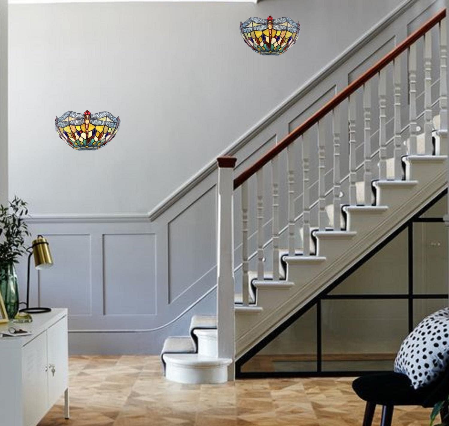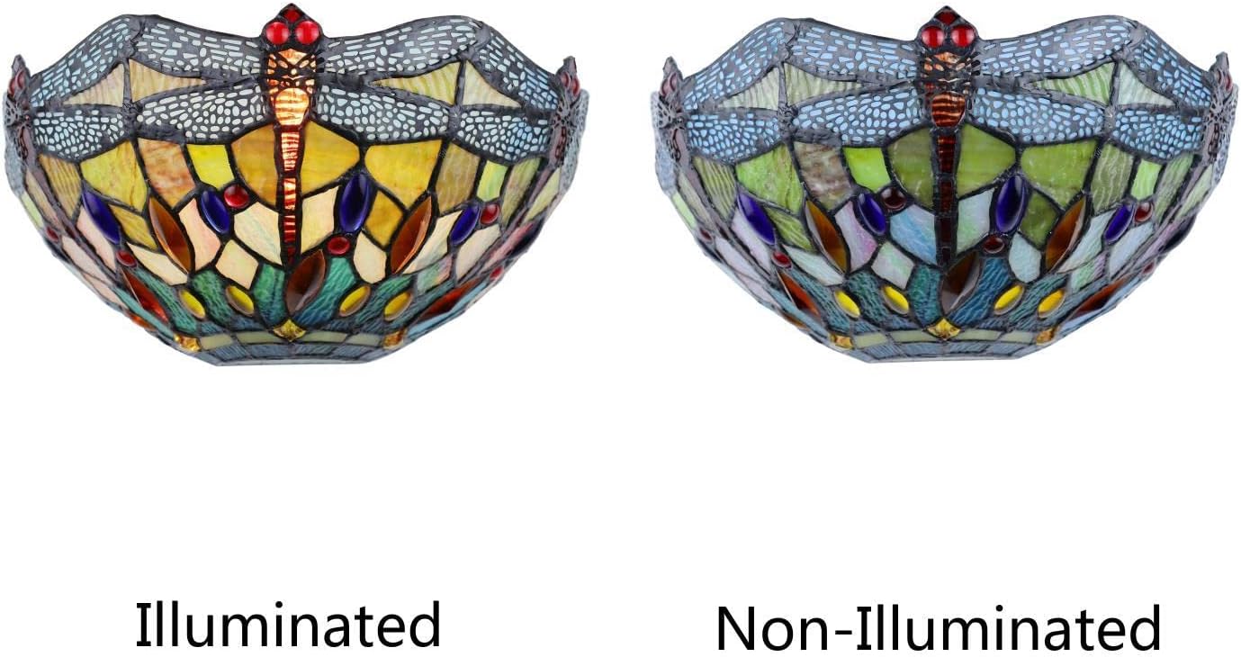 Empress is a stunning 1 light wall sconce, featuring a beautiful victorian shade. This piece would be perfect in a hallway or even over a bed frame. Each shade is hand crafted, using the same methods developed by Louis Comfort Tiffany in the early 1900`s. This process entails using 97 hand cut stained art glass pieces, 26 glass beads and 5 crystals, each wrapped in fine copper foil and soldered together at extremely high temperatures to form each unique piece. Exact size to the nearest inch may vary, and exact color of each glass piece may vary due to each piece being hand crafted. First image is with the light shining through, second image is with no light. Dry listed and recommended for an indoor setting.