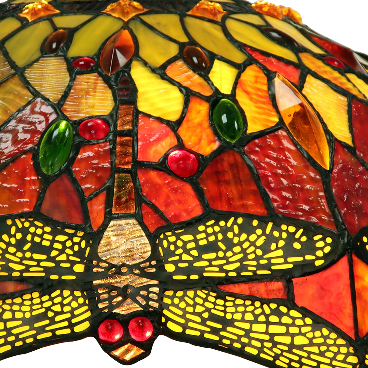 EMPRESS, a 3-light Dragonfly style doublie lit table lamp, will provide the design focal point for your home. Expand the effect by adding one or more of the other lamps in this design style. Hand crafted from over 340 individually hand cut pieces of art glass, 69 glass beads and 27 glass crystals that will add color and beauty to any room. Each glass piece individually positioned to create the perfect look and crystal gems to highlight the perfection. Exquisite touches create warmth and serenity. Expertly craft with top quality materials, and made using the same style developed by Louis Comfort Tiffany in the early 1900`s, with each piece lined in a fine copper foil and soldered together at high heat, to form each unique shade. This fixture is compatible with flourescent, incandescent, and LED bulbs. UL Listed, Dry listed and recommended for an indoor setting only.