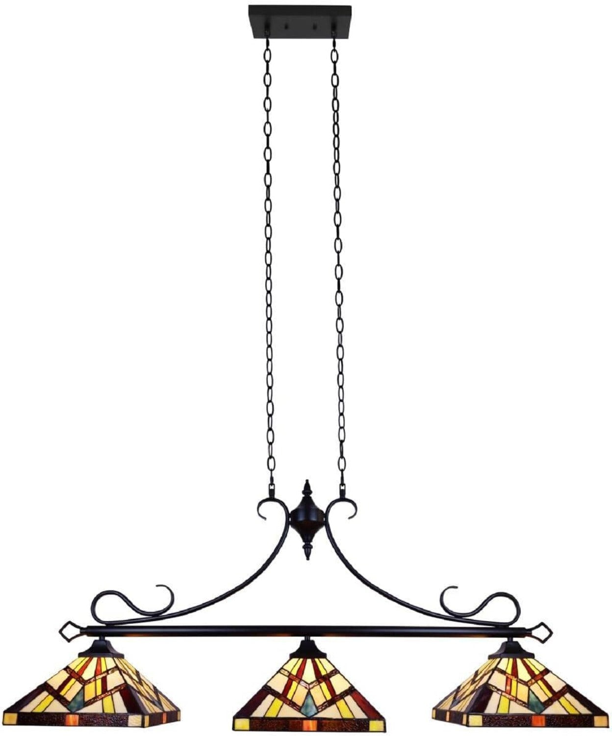 Chloe Lighting CH3T523BM47-IL3 Vincent Mission Tiffany-Style 3 Light Island Pendant 47" Wide