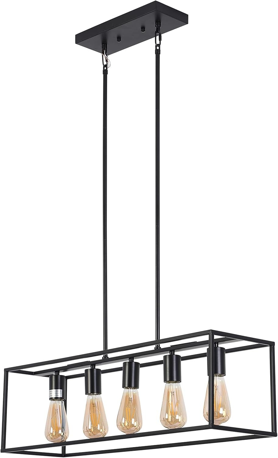 Ironclad is a sleek rectangle design 5 light, industrial-style island pendant that would be a perfect fit over a bar area and over a dining table! The metal frame is in a matt black finish. The fixture takes five 60W E26 bulbs and is compatible with incandescent, flourescent, and LED bulbs. This fixture is dry listed and UL listed, and not recommended for damp/wet locations. Recommended for residential and commercial use.