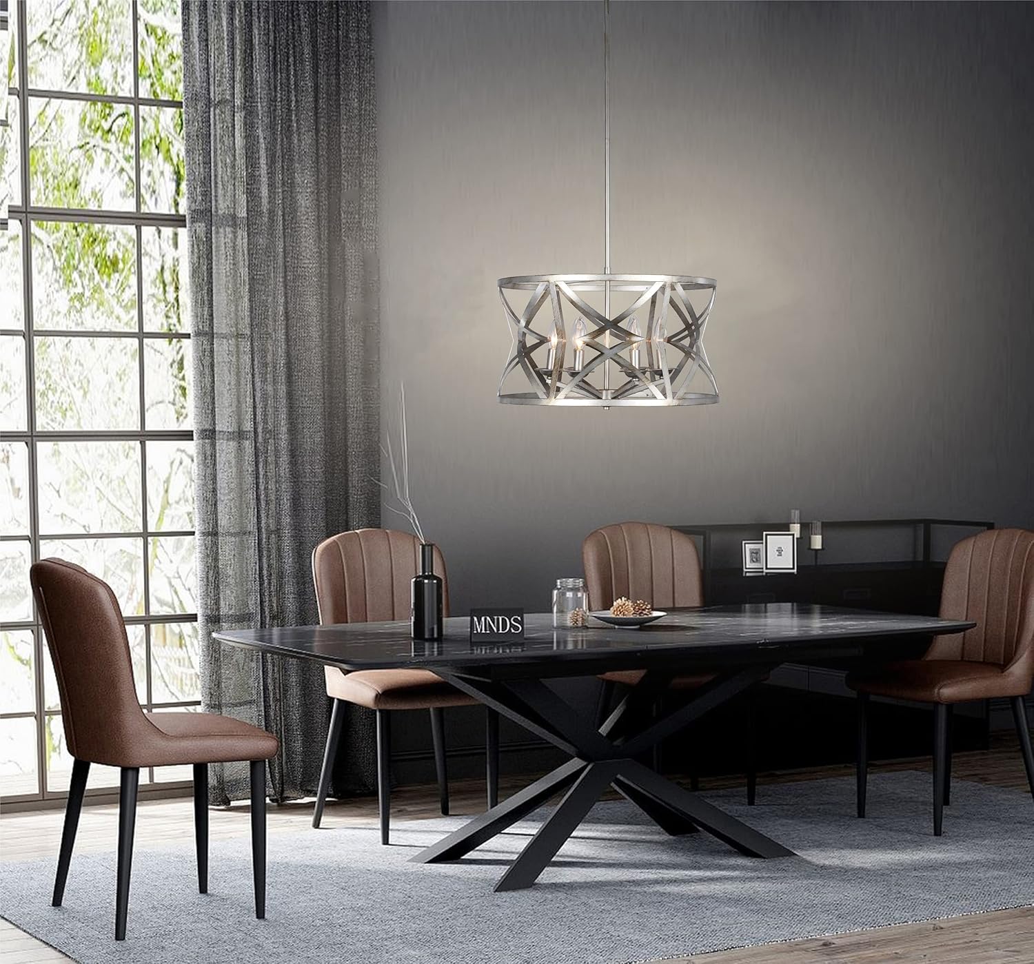 Alina is a sleek drum design 5 light, farmhouse-style ceiling pendant that would be a perfect fit over a bar area, over a dining table and in the hallway! The metal frame is in an antique distressed silver finish. The fixture takes five 60W E12 bulbs and is compatible with incandescent, flourescent, and LED bulbs. This fixture is dry listed and UL listed, and not recommended for damp/wet locations. Recommended for residential and commercial use.