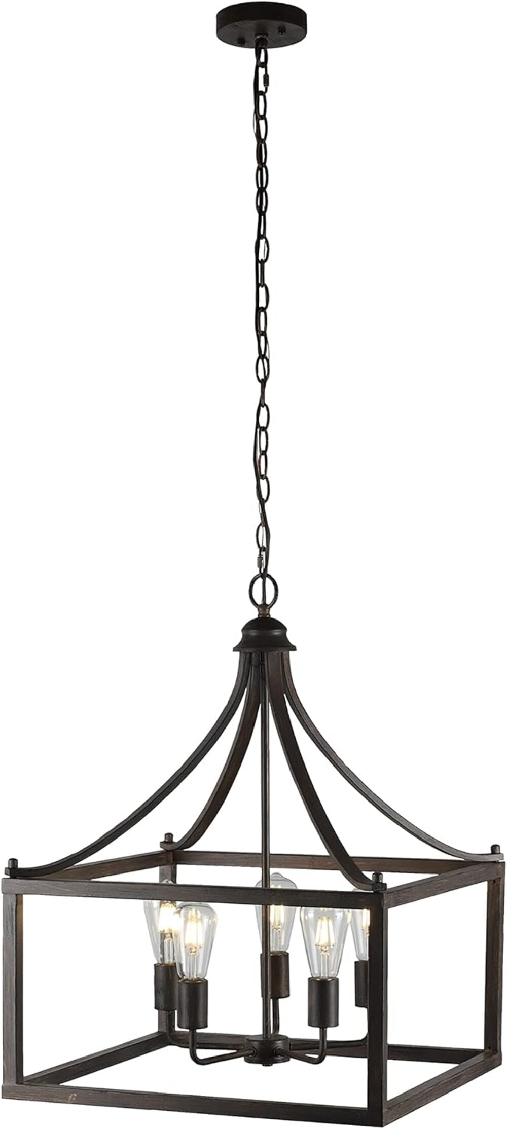 Ryder is a gorgeous, antique wood finish, farmhouse-style 5 light hanging pendant, and it would be perfect focal point in any room! It takes five 60W E26 bulbs (not included), is compatible with fluorescent, incandescent, and LED bulbs, and would a perfect fit in the living room, dining room, hallway, den and foyer! This fixture is dry listed and UL listed, and not recommended for damp/wet locations. Recommended for residential and commercial use.