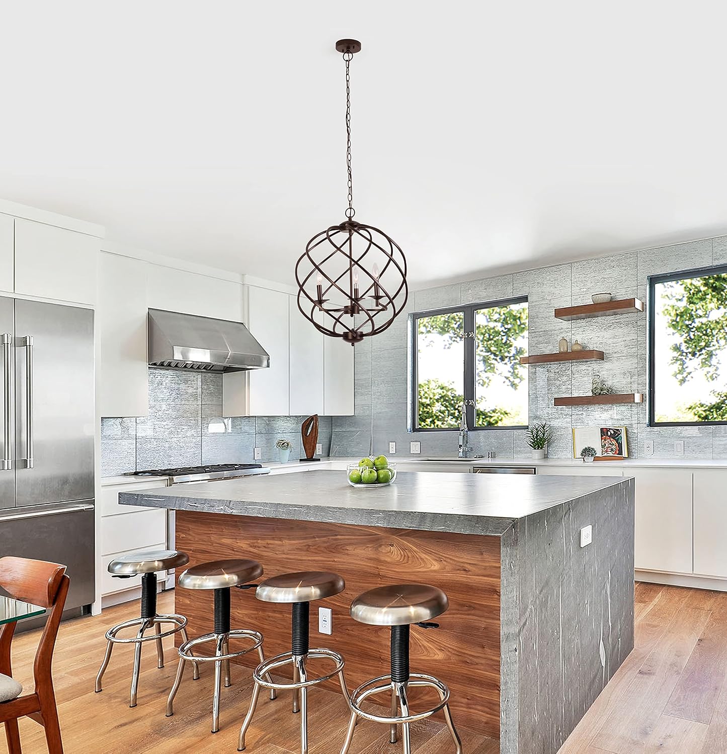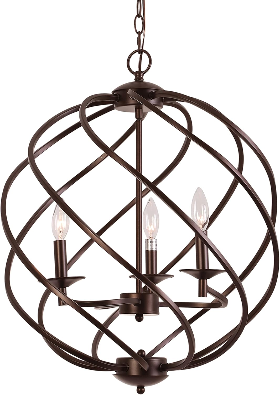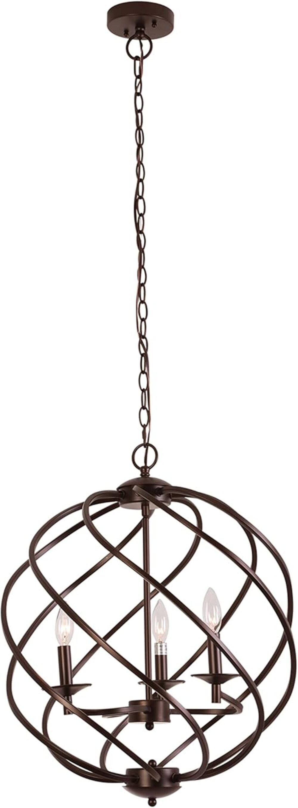 Jericho is a gorgeous, oil rubbed bronze, farmhouse-style 3 light hanging pendant, and it would be perfect focal point in any room! It takes three 60W E12 bulbs (not included), is compatible with fluorescent, incandescent, and LED bulbs, and would a perfect fit in the living room, dining room, hallway, den and foyer! This fixture is dry listed and UL listed, and not recommended for damp/wet locations. Recommended for residential and commercial use.