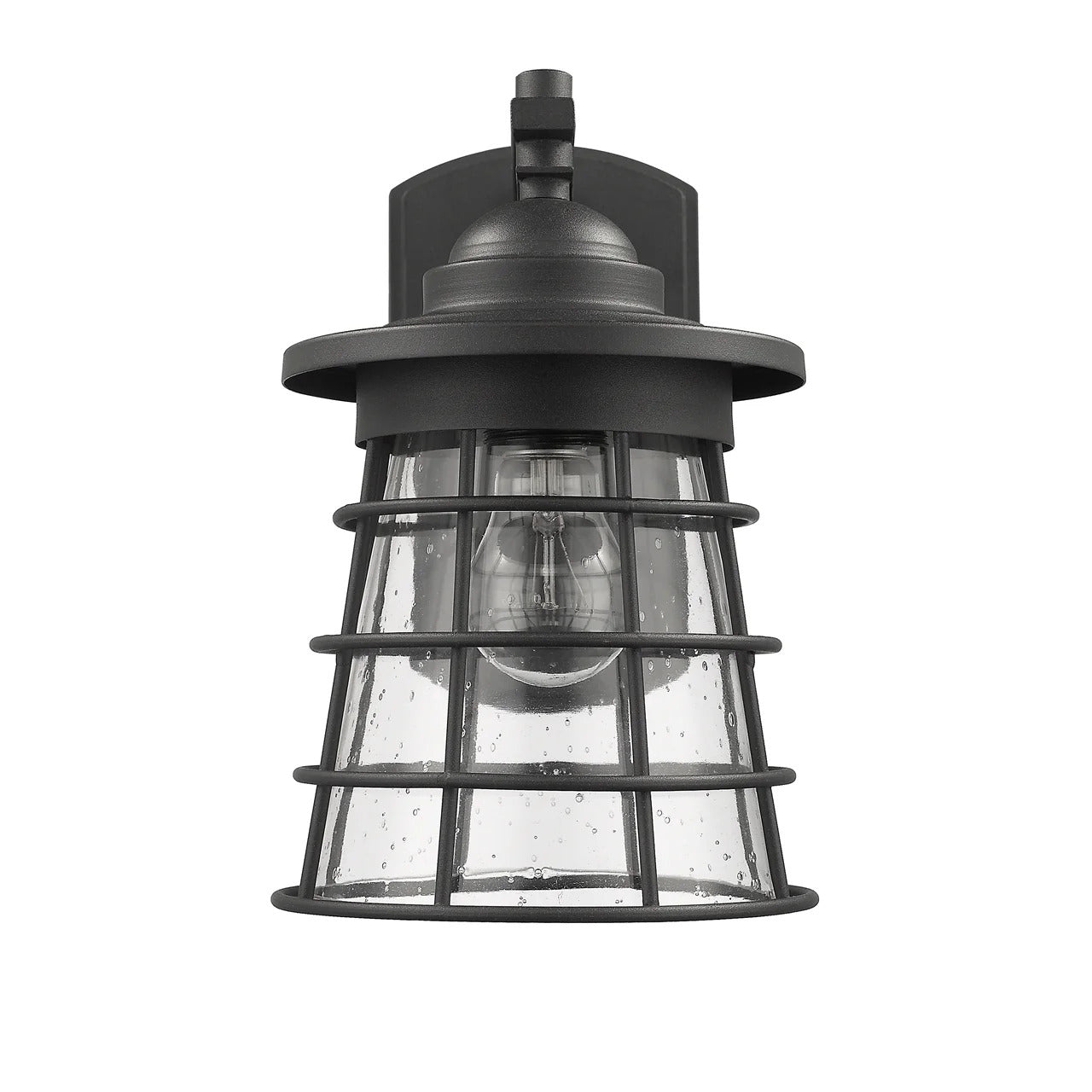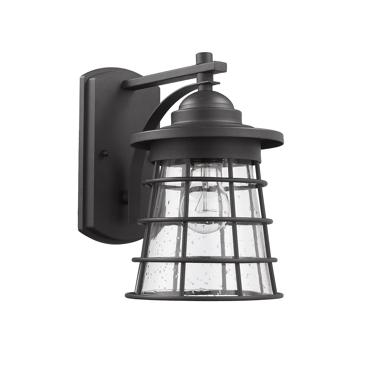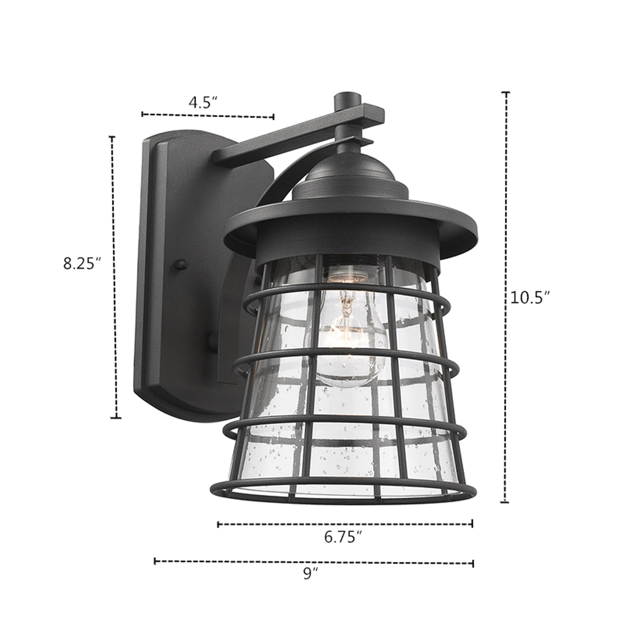 Brighten your outdoor spaces with the Chloe Lighting Damon transitional wall sconce. Standing 10.8″ tall × 5.6″ wide × 7.8″ deep, this fixture features a weather-resistant, textured black powder-coated steel frame and clear seeded glass shade to softly diffuse light. Wet-rated and UL-listed, it’s designed to endure rain, snow, and temperature changes—perfect for illuminating entryways, patios, garage exteriors, or porch walls. The simple elegance of its transitional design complements both modern and classic architectural styles.
