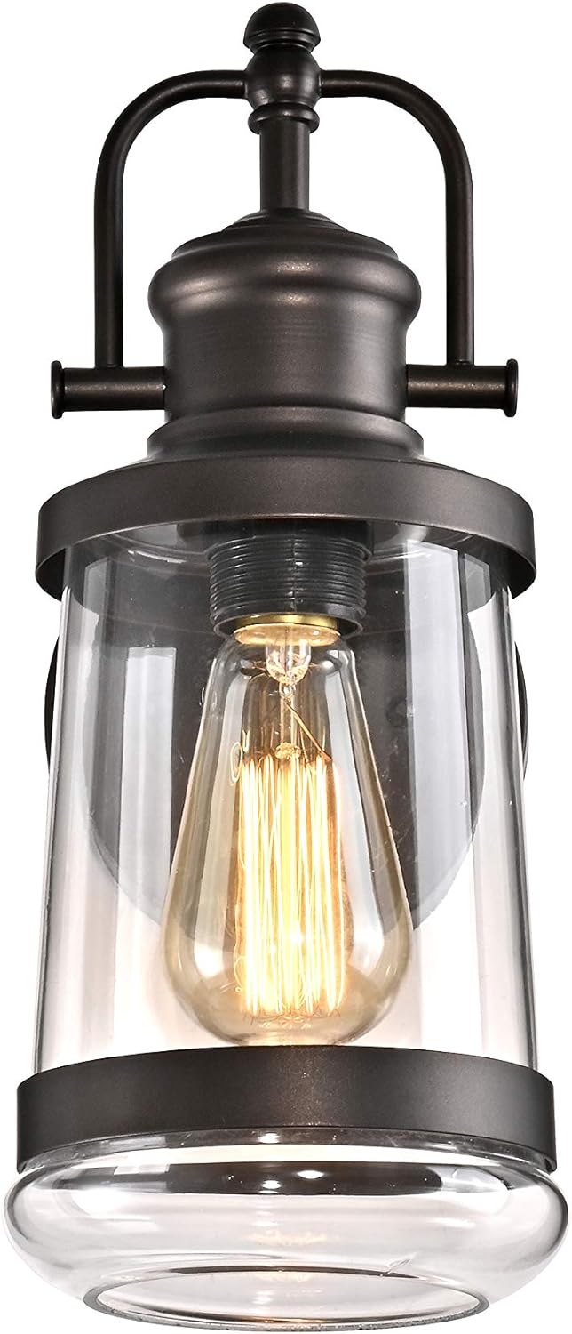 This is a delightfully designed outdoor wall sconce, in a rubbed bronze finsh. With this sconces unique shape, and crystal clear glass globe, it will definitley catch the neighborhoods eye! It also has an open base, making light bulbs changed very easy. The fixture takes one 100W bulb and is compatible with flourescent, incandescent and LED bulbs. All of our wall sconces are UL listed, and dry, damp and wet listed, to survive all weather conditions, hot and cold.