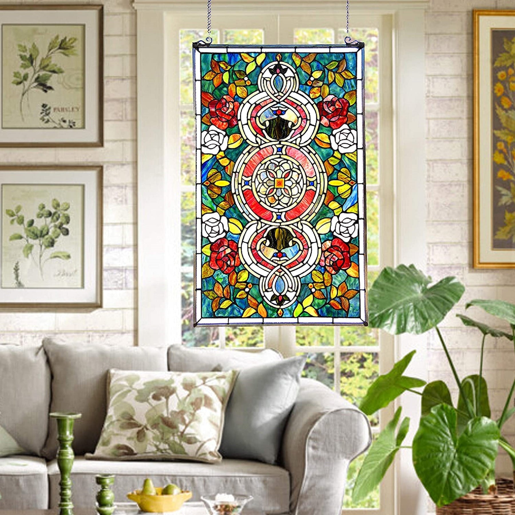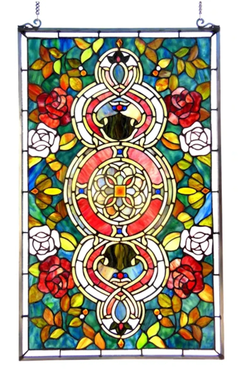 The Chloe Lighting Eureka Sonara Tiffany-Glass Victorian Window Panel measures 20 by 32 inches and showcases exquisite Victorian artistry. Crafted with authentic Tiffany-style stained glass, this decorative window panel features rich colors and intricate glasswork that bring classic elegance to any room. Perfect for mounting in windows, door panels, or as a standalone decorative accent, it allows natural light to filter through the vibrant glass, creating stunning visual effects. This piece is ideal for homeowners who appreciate timeless design and want to add a distinctive artistic touch to their interiors.