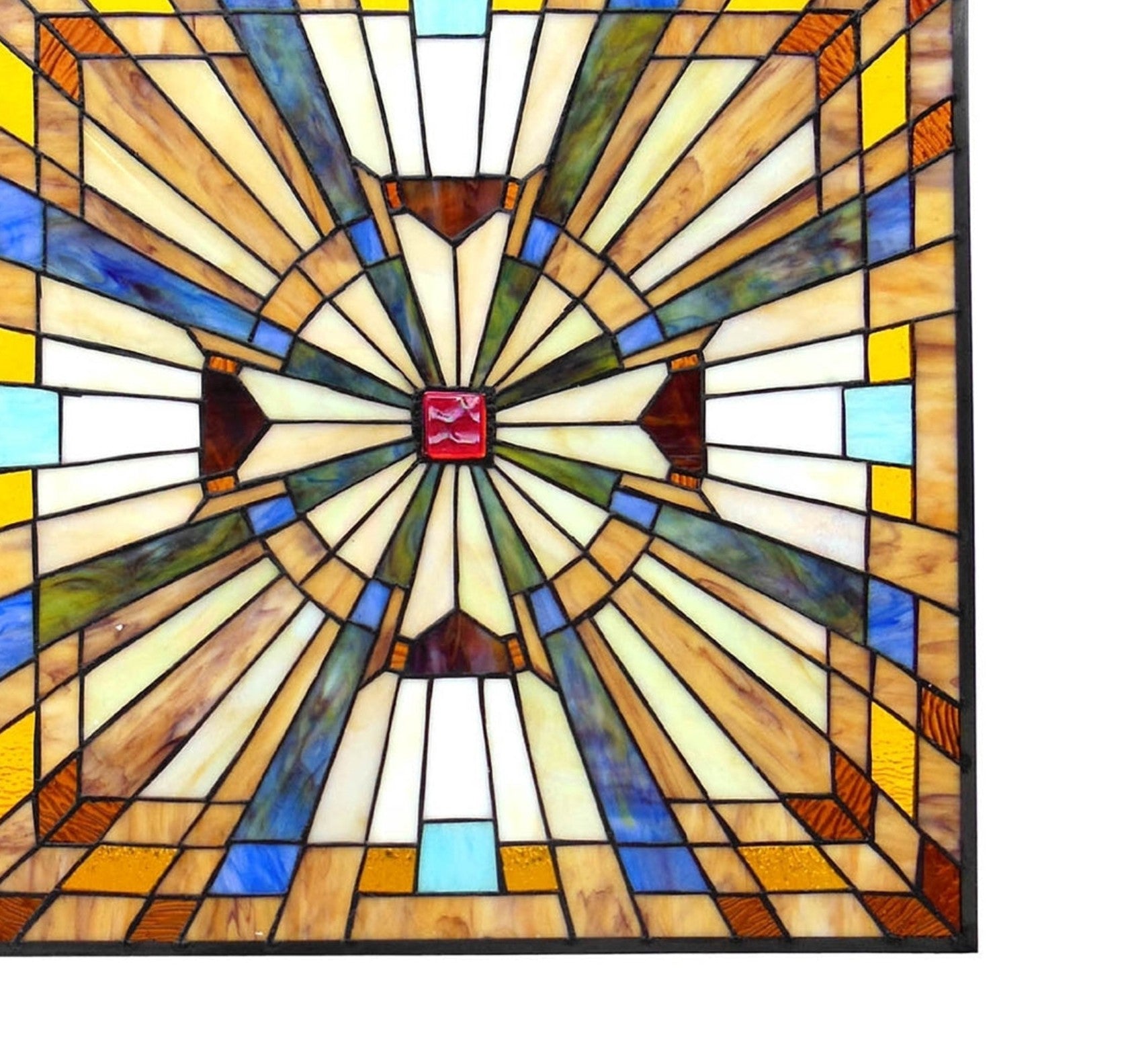 Chloe Lighting CH1P004AM24-GPN Flare Tiffany-Glass Mission Square Window Panel 24``