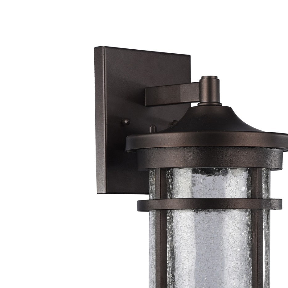 Add charm and energy-efficient lighting to your outdoor spaces with the Frontier transitional wall sconce. Crafted in a rubbed bronze finish, this stylish fixture features a rounded crackle glass cylinder that creates a warm, textured glow. The integrated 6W LED bulb produces 520 lumens of soft warm white light (2700K–3000K), equivalent to a 40W incandescent, and offers long-lasting illumination ideal for porches, patios, and entryways.