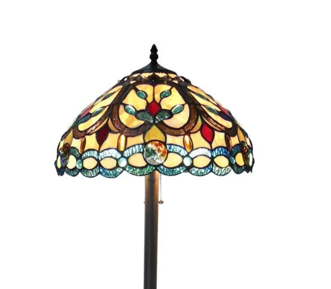 Tiffany-Style Stained Glass Floor Lamp – Vintage Floral Design with Pull Chain