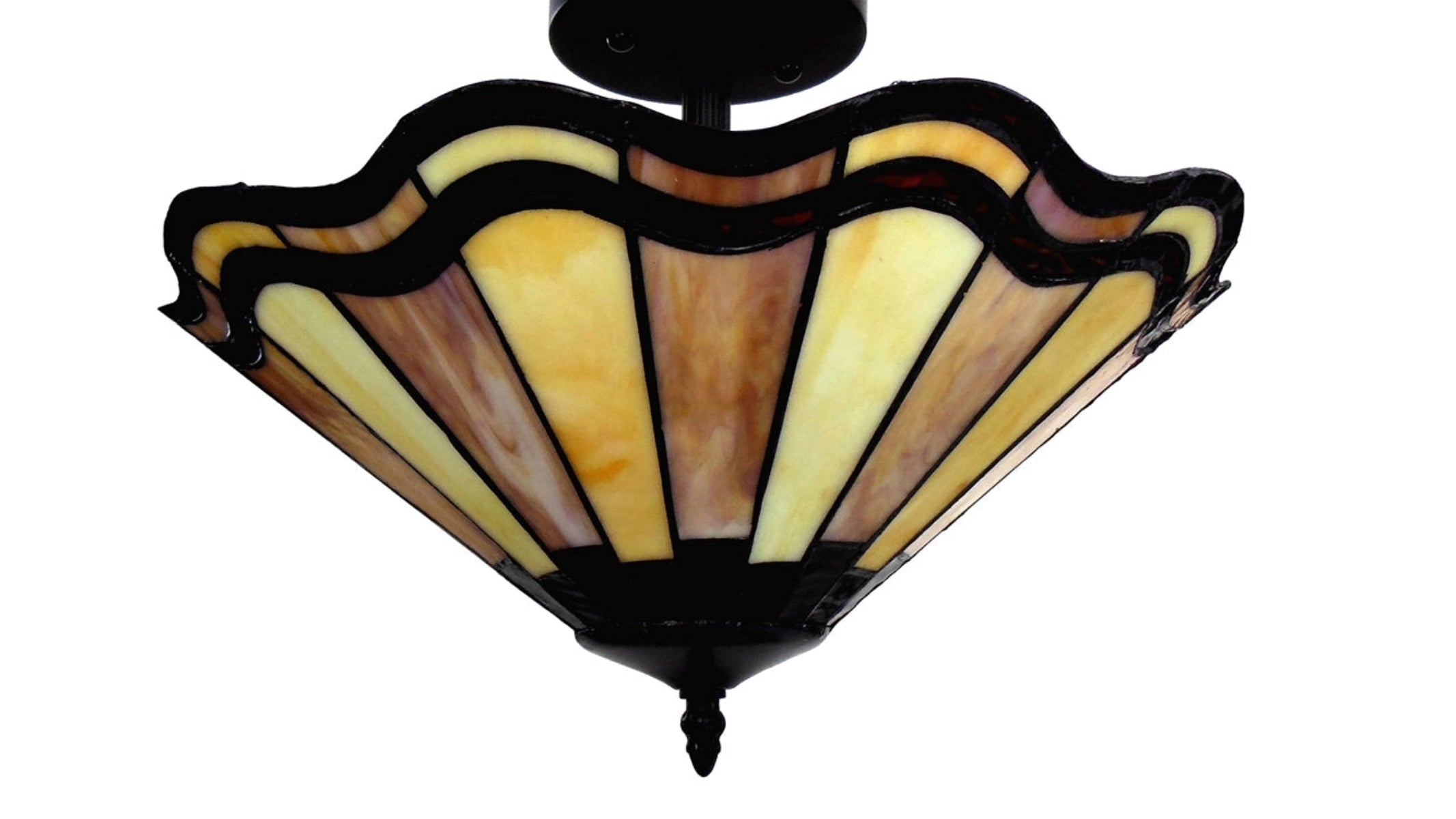 The Chloe Lighting Heidi Tiffany-style semi-flush ceiling fixture showcases exquisite craftsmanship with its iconic stained glass shade, measuring 16 inches in diameter. This two-light fixture blends vintage charm and modern functionality, making it an ideal centerpiece for living rooms, hallways, or bedrooms. The classic Tiffany-style design features rich amber and muted tones that create a warm and inviting ambiance, enhancing any décor. Its semi-flush mount offers flexible installation, saving space while delivering beautiful lighting from above. Perfect for adding an artistic touch and ambient glow to your home.