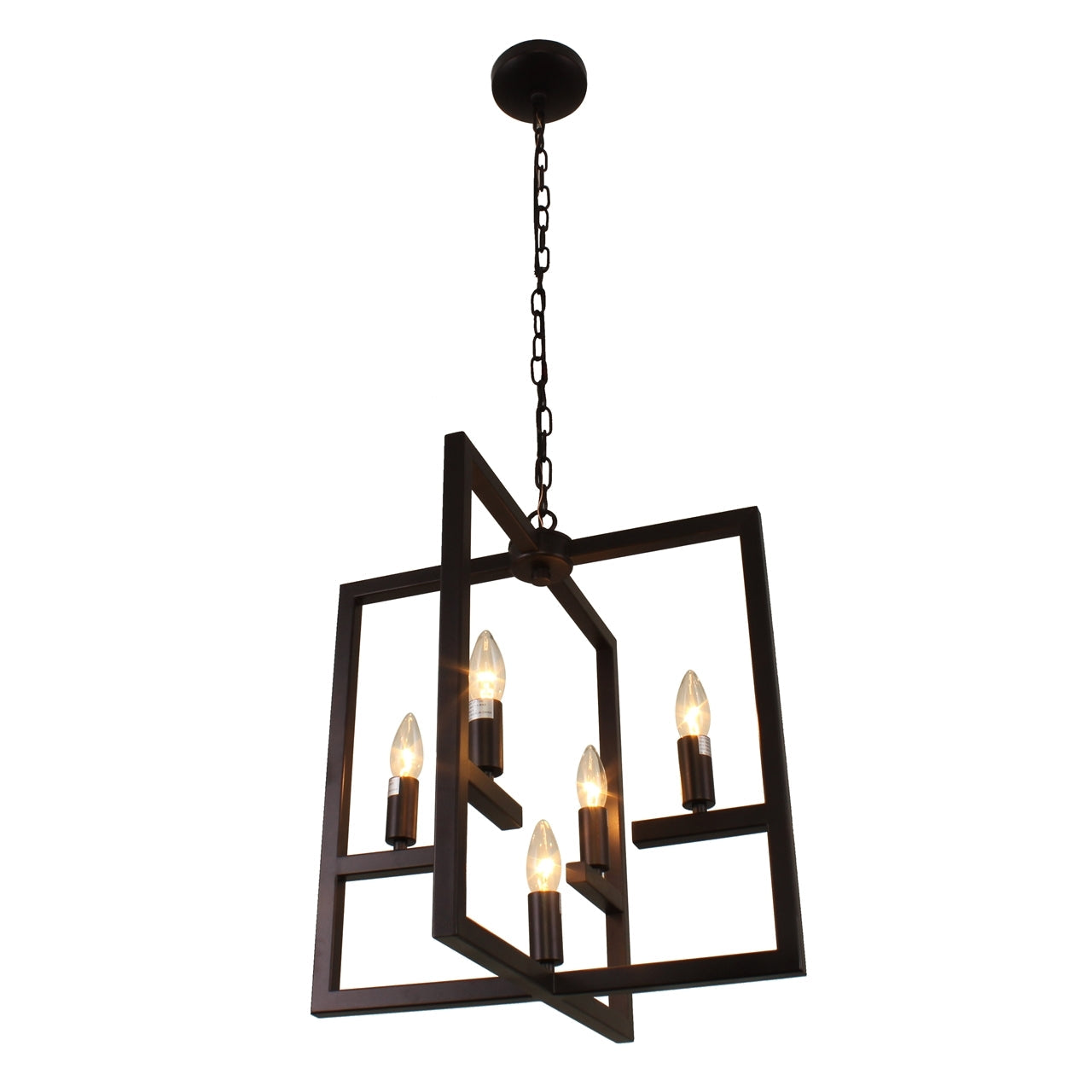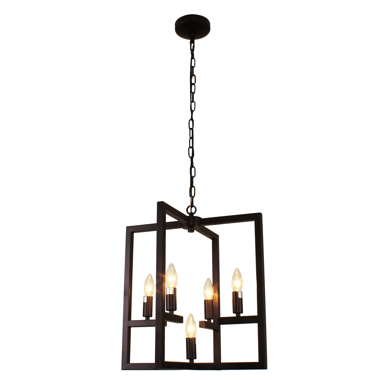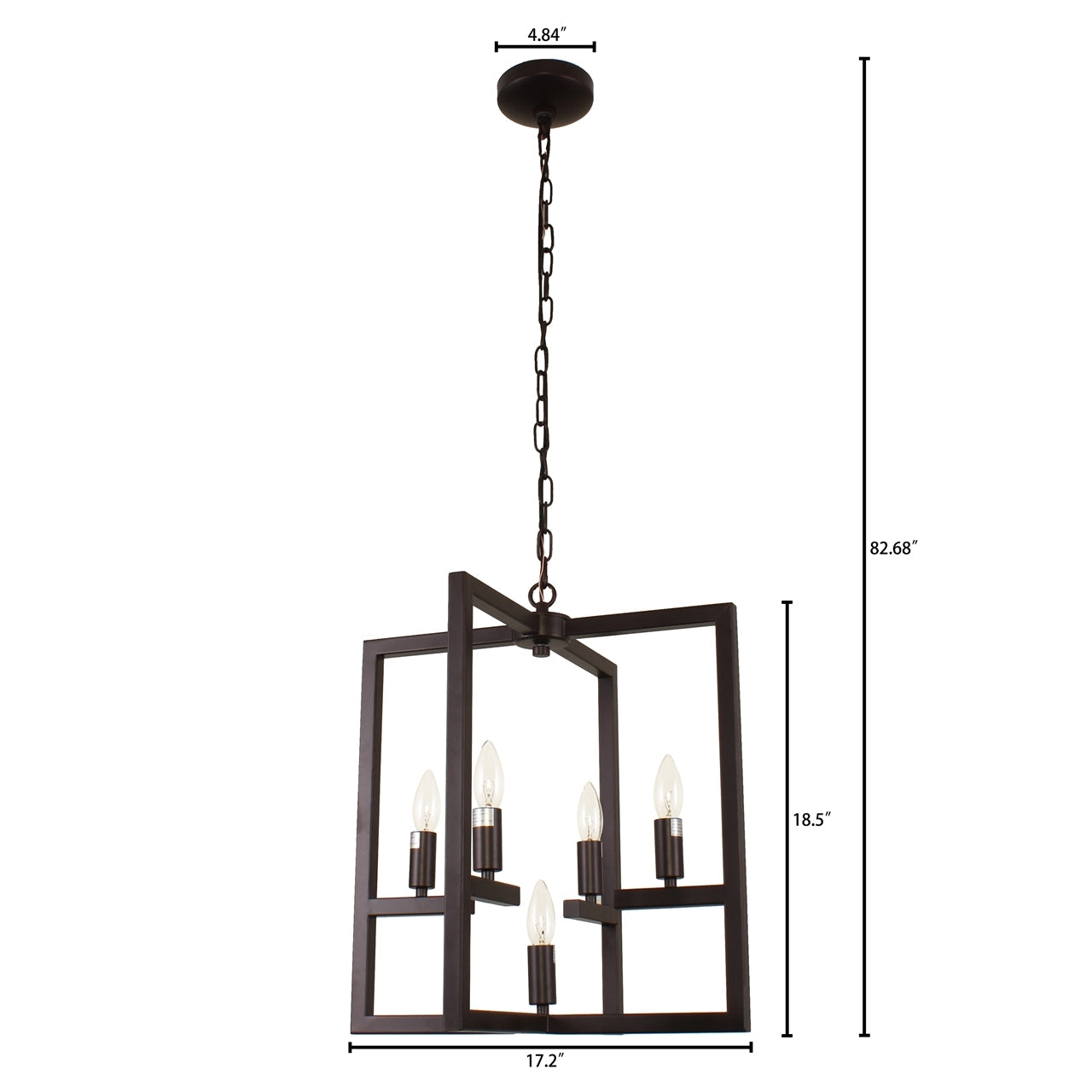 Infuse your space with bold architectural flair using the Ironclad Farmhouse-style 5-light ceiling pendant, defined by its clean square lines and striking oil rubbed bronze finish. Designed for maximum light output with an open-frame structure and no glass to obstruct the glow, this piece delivers form and function in one elevated package. Whether hung above a dining area, entryway, or loft, Ironclad adds industrial charm and geometric interest to any interior.